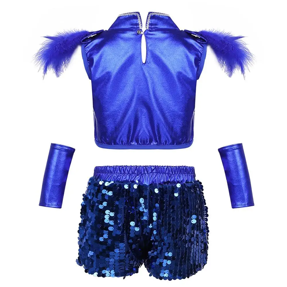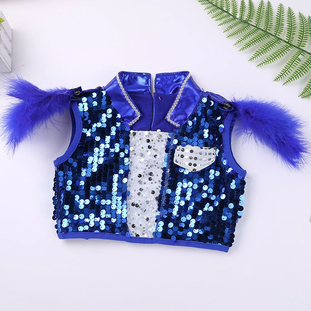 Special Offer Kinderen Jazz Dans Kostuum voor Kinderen Meisjes Hip Hop Crop Top met Shorts Outfit Glanzende Pailletten Jongens Jazz Crop Top voor prestaties Discount 0% Today!