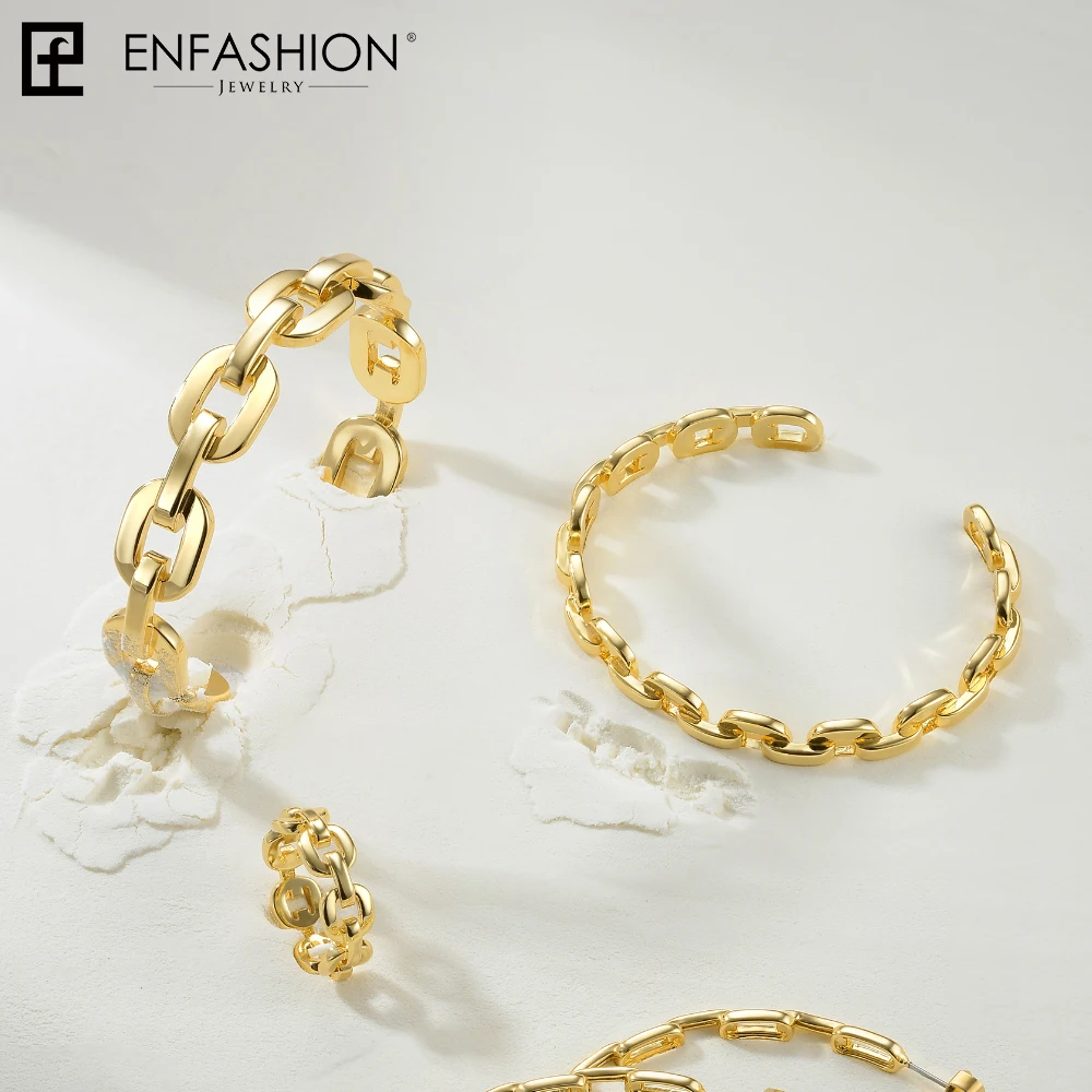 Special Offer Enfashion Zuivere Vorm Medium Link Chain Manchet Armbanden Armbanden Voor Vrouwen Goud Kleur Mode sieraden Sieraden Pulseiras BF182033 Discount 10% Today!