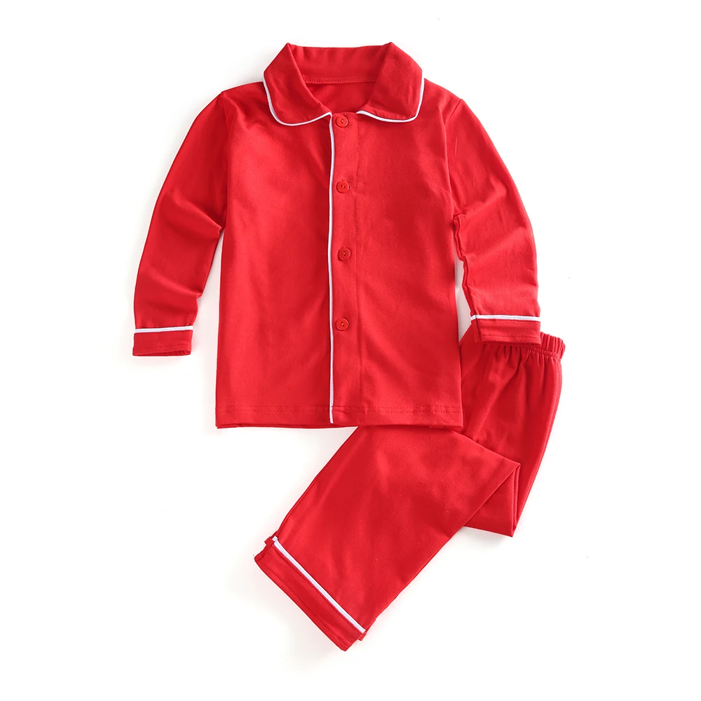 Special Offer 100% katoen Peuter Jongens en Meisjes nachtkleding Familie Bijpassende Kinderen Kerst effen kleur Ruche kids Pyjama Discount 18% Today!