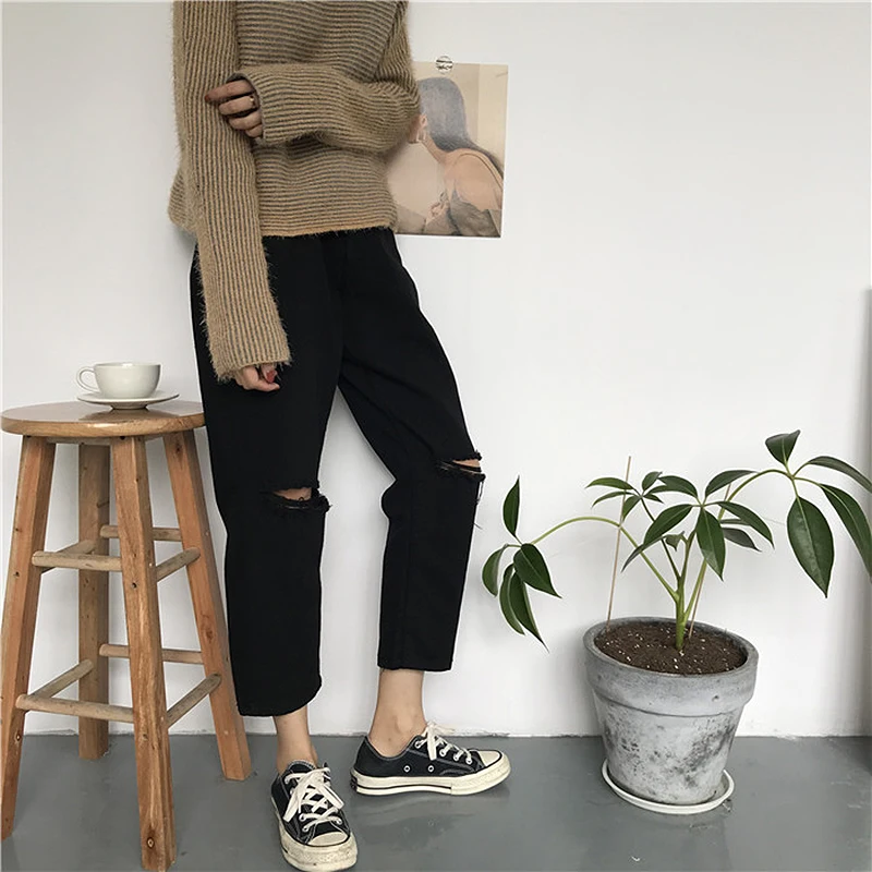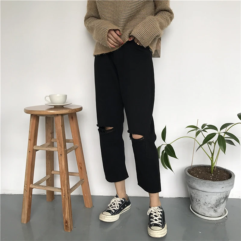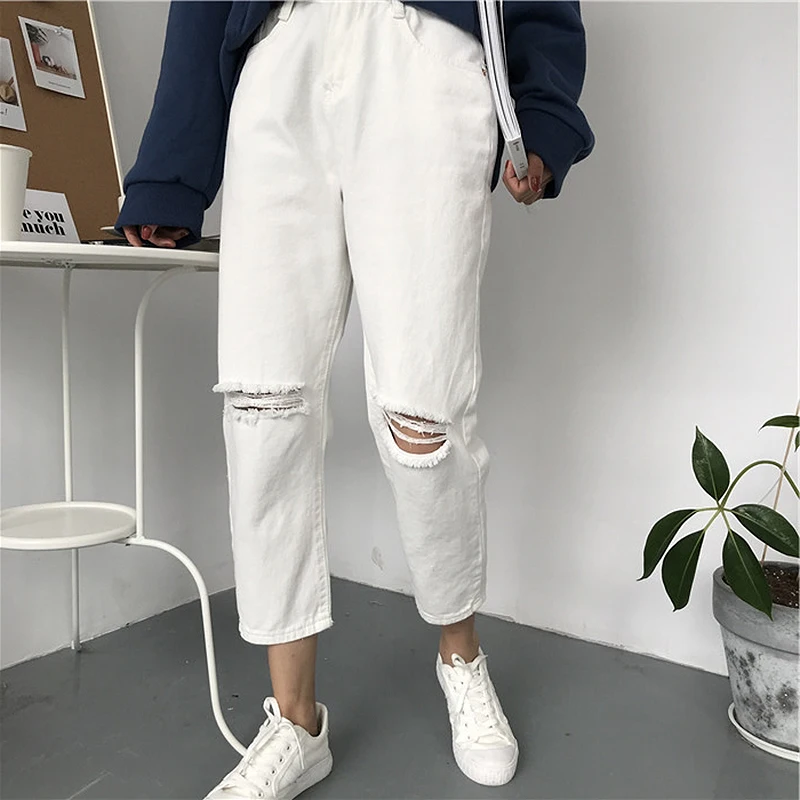 Special Offer 2019 Vintage Gescheurde Jeans Vrouw Hoge Taille Losse Boyfriend Jeans Plus Size Wit Zwart Jeans voor vrouwen Casual Mom Jeans femme Discount 35% Today!