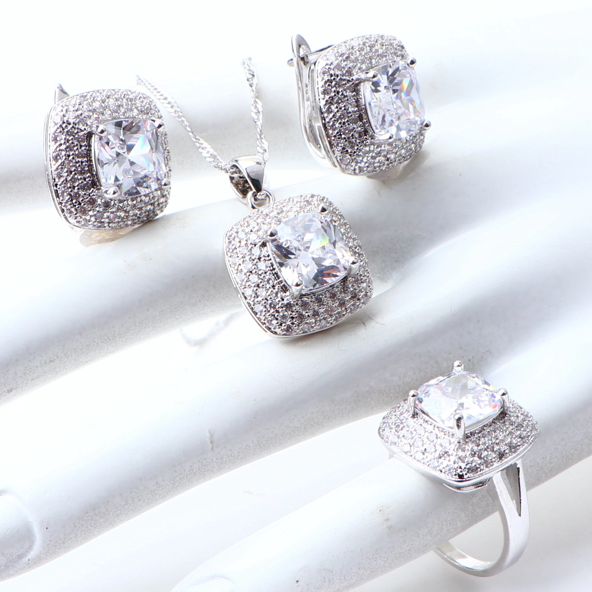 Special Offer Witte Zirconia Zilver 925 Bruids Sieraden Sets Oorbellen Met Stone Ketting Armbanden Hanger Ring Voor Vrouwen Kostuum Set Geschenkdoos Discount 36% Today!