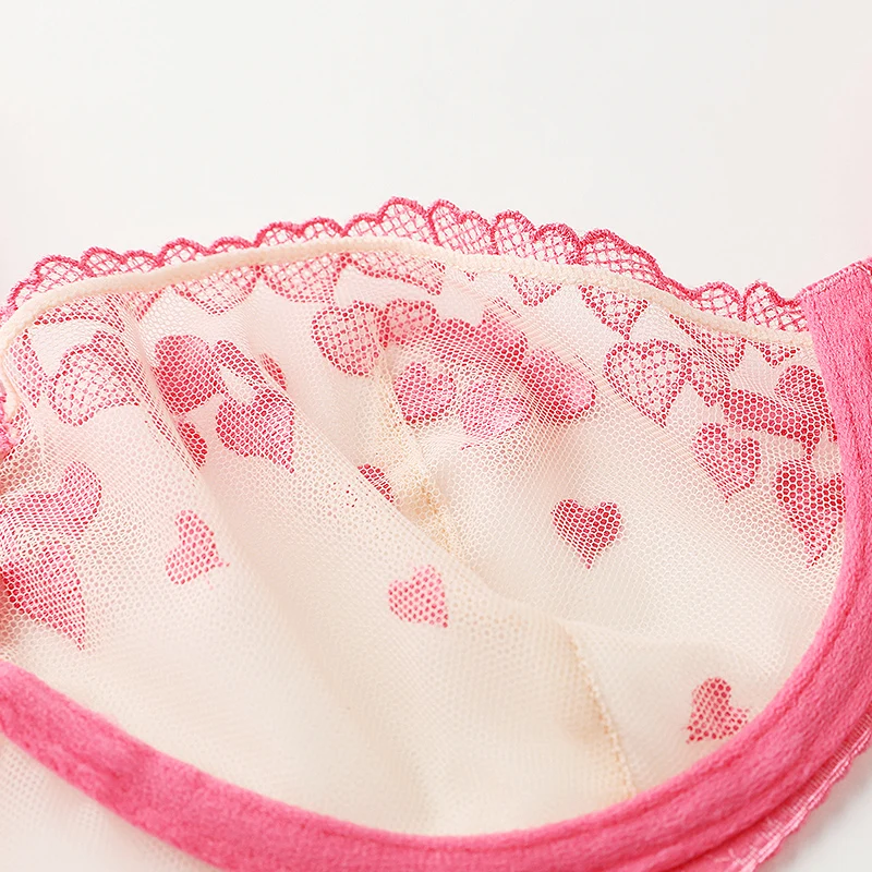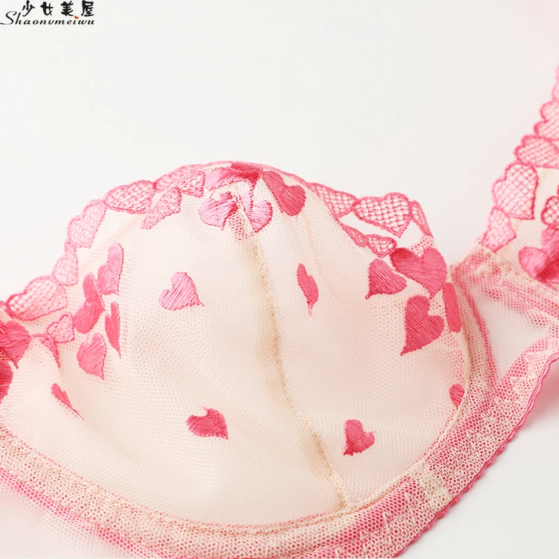 Special Offer Shaonvmeiwu Sexy vrouwen nieuwe dunne gedeelte van het netwerk ondergoed roze liefde beha transparante borduurwerk beha verleiding Discount 40% Today!