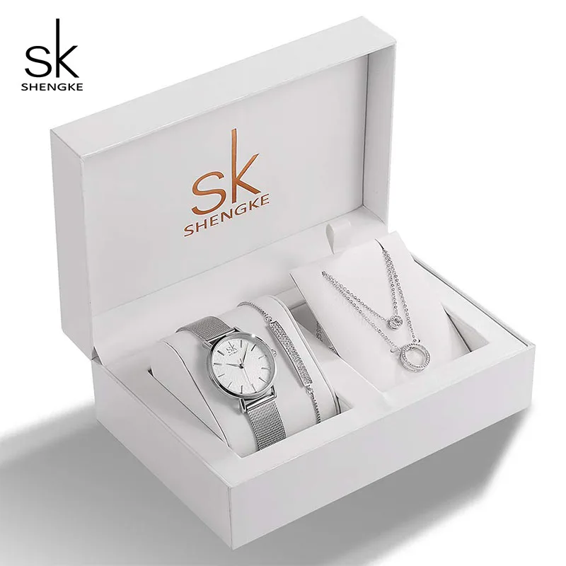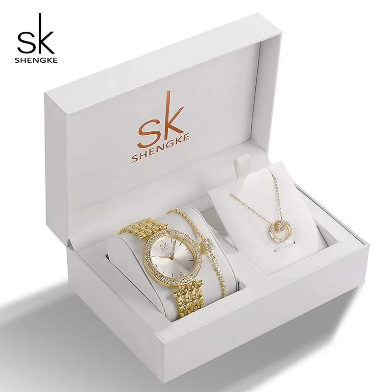 Special Offer Shengke Merk Wife s Gift vrouwen Quartz Horloge Sets Mode Creatieve Kristal Ontwerp Armband Ketting Set Vrouwelijke Sieraden Set Discount 45% Today!