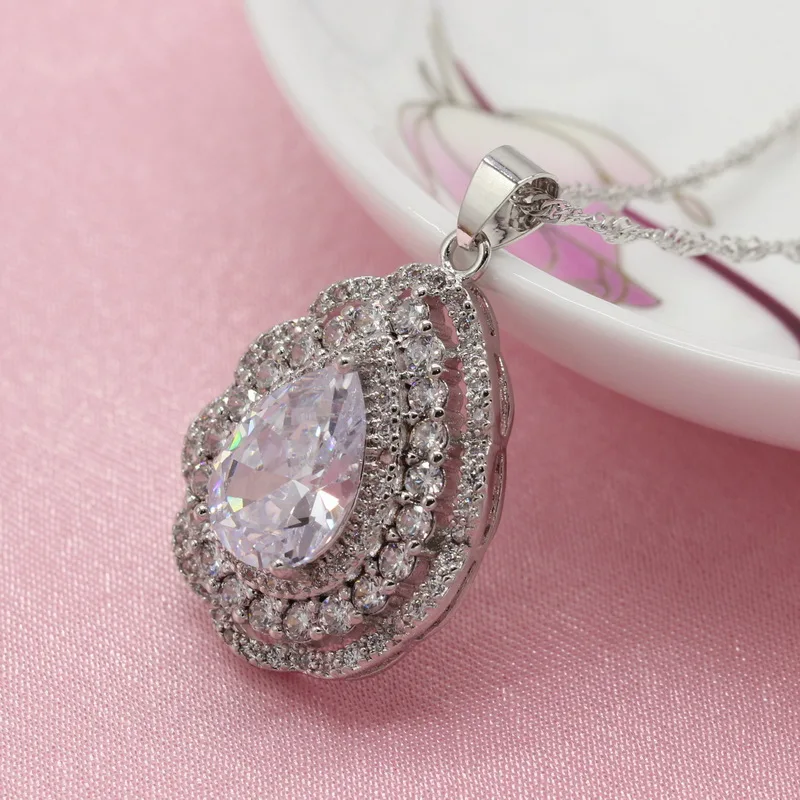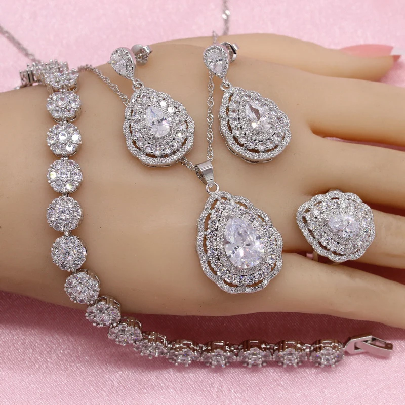 Special Offer Exquisite Pure Wit Zirconia 925 Zilveren Sieraden Sets Voor Vrouwen Bruiloft Ketting Oorbellen Armband Ring Gratis Geschenkdoos Discount 50% Today!