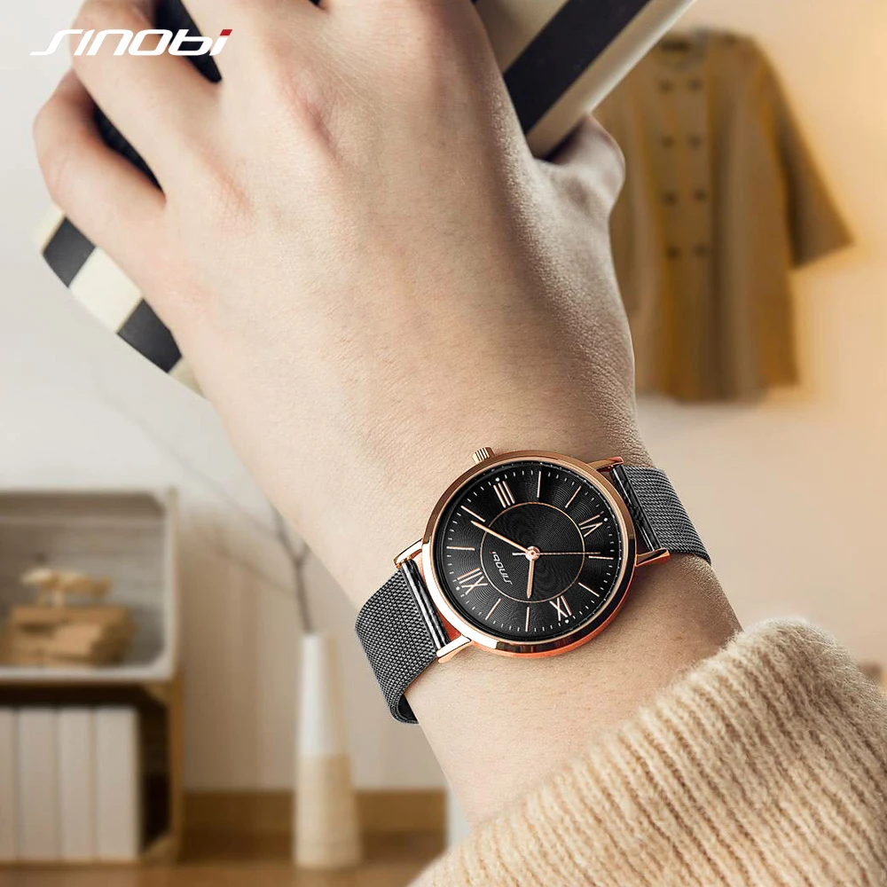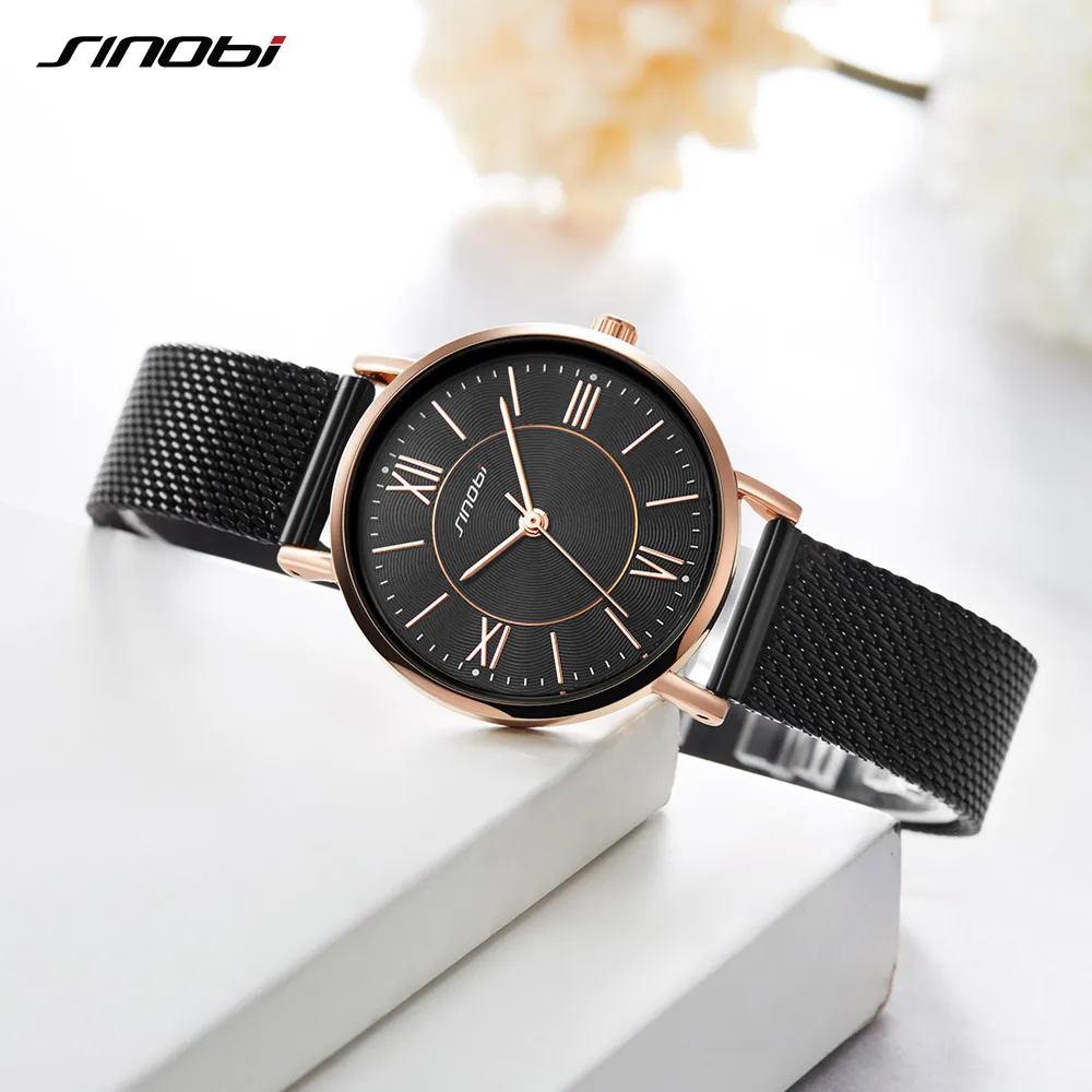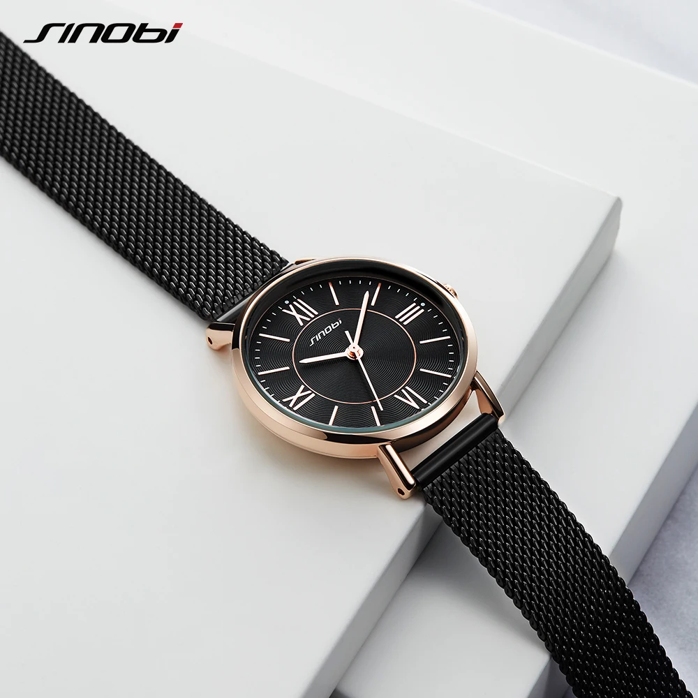Special Offer SINOBI Nieuwe Collectie Classic Vrouwen Horloges Zwart Gouden Luxe Eenvoudige Rvs Armband Horloge Dames Horloge Klok Mujer Discount 52% Today!