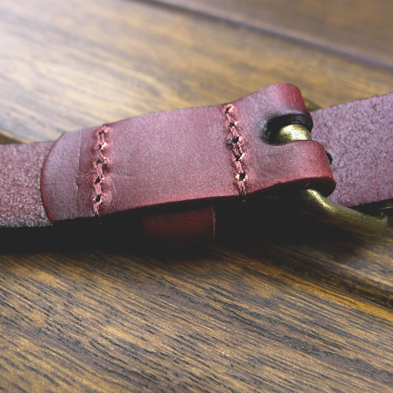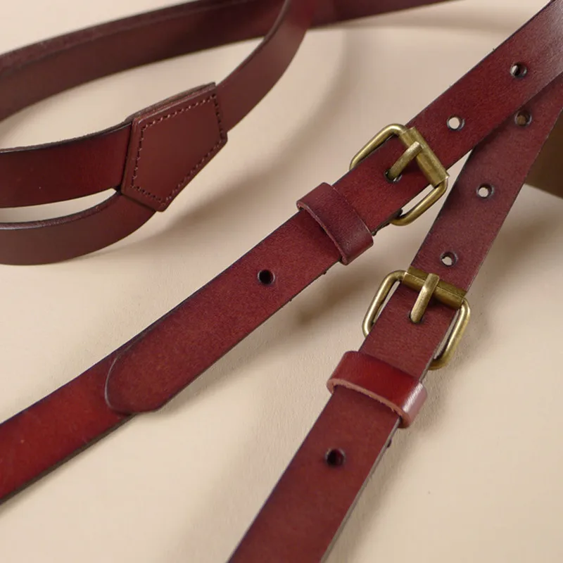 Special Offer Nieuwe Donker bruin rundleer bretels Vrouwen mannen riem hoofd huid britse retro tri clamp bretels bretels breed 2CM Discount 10% Today!