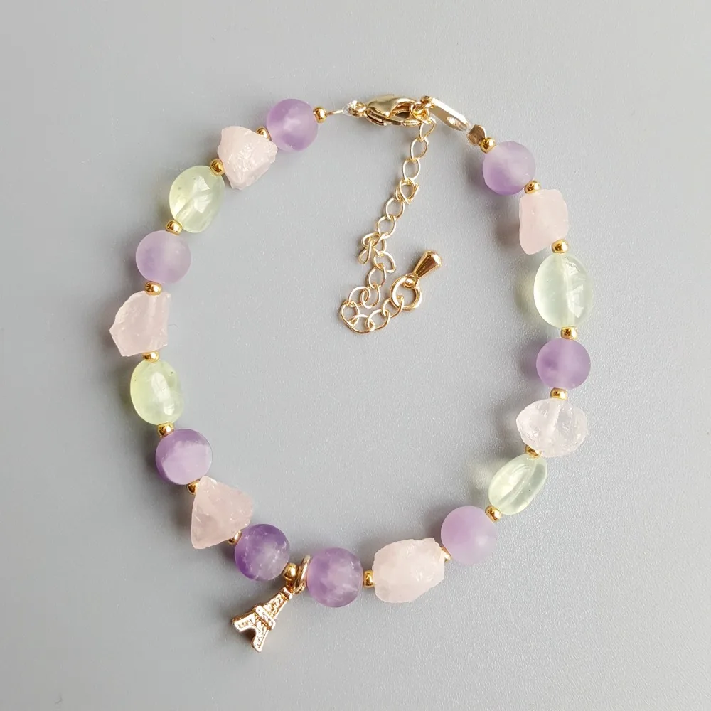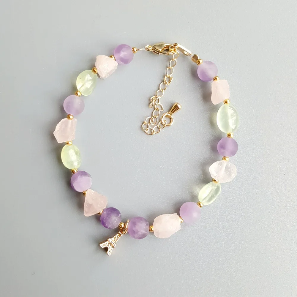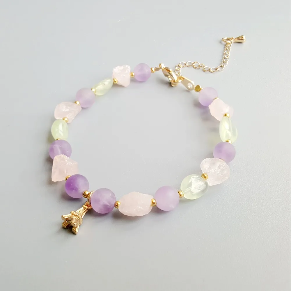 Special Offer Lii Ji Real Light Amethyst Prehniet Rozenkwarts Natuursteen Armband Ijzertoren Charm Delicate Sieraden Voor Kind of Vrouwen Discount 15% Today!