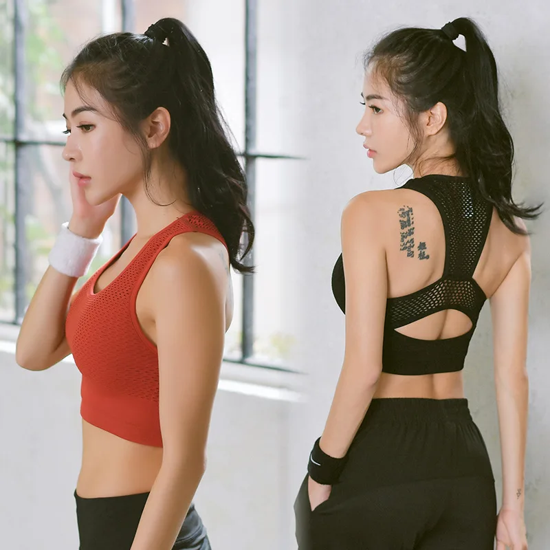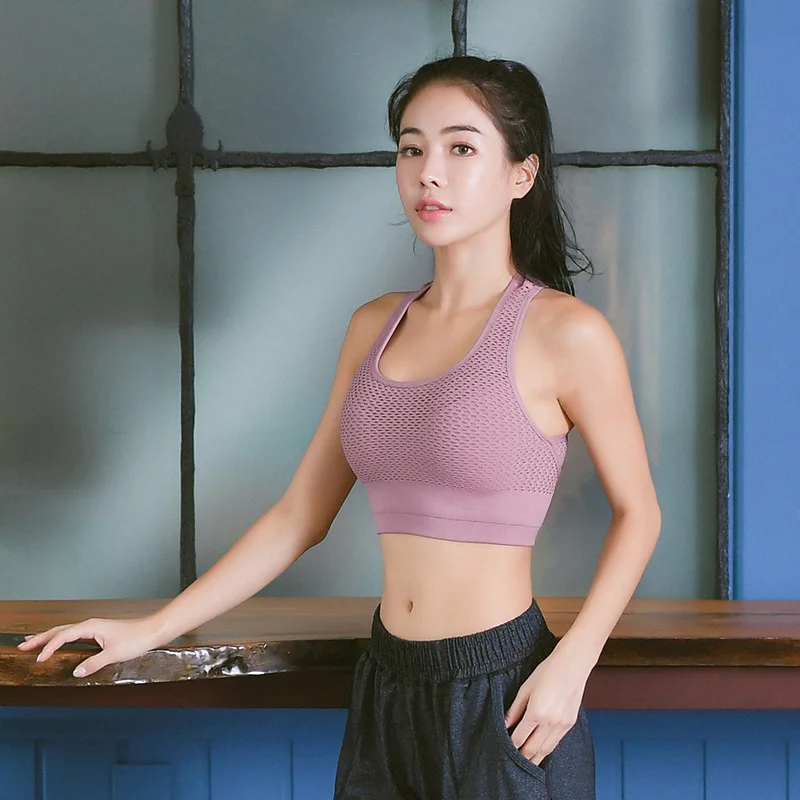 Special Offer Schokbestendig Hoge Impact Roze Sportbeha Vrouwen Netto Garen Padded Push Up Yoga Beha Ademend Fitness Tank Cropped Gym Sport beha Tops Discount 15% Today!