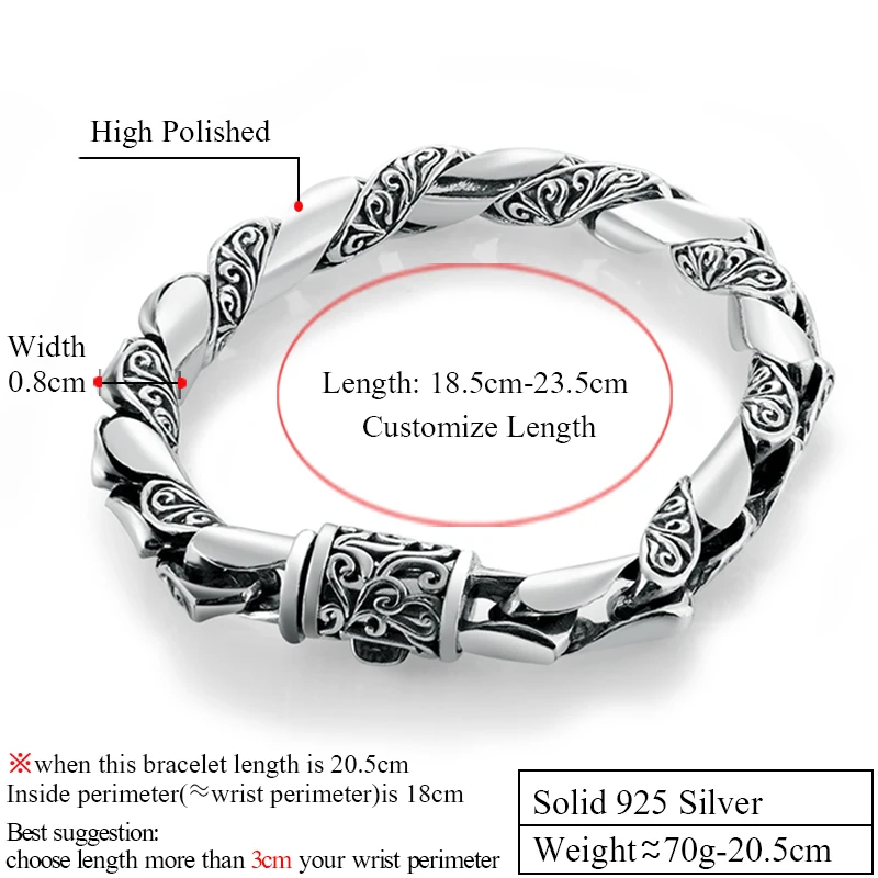 Special Offer Zabra 925 Zilveren Armband Mannen Vintage Punk Hoge Gepolijst Gunstige Bloemen Reliëf Armbanden Handgemaakte Thaise Zilveren Sieraden Discount 20% Today!