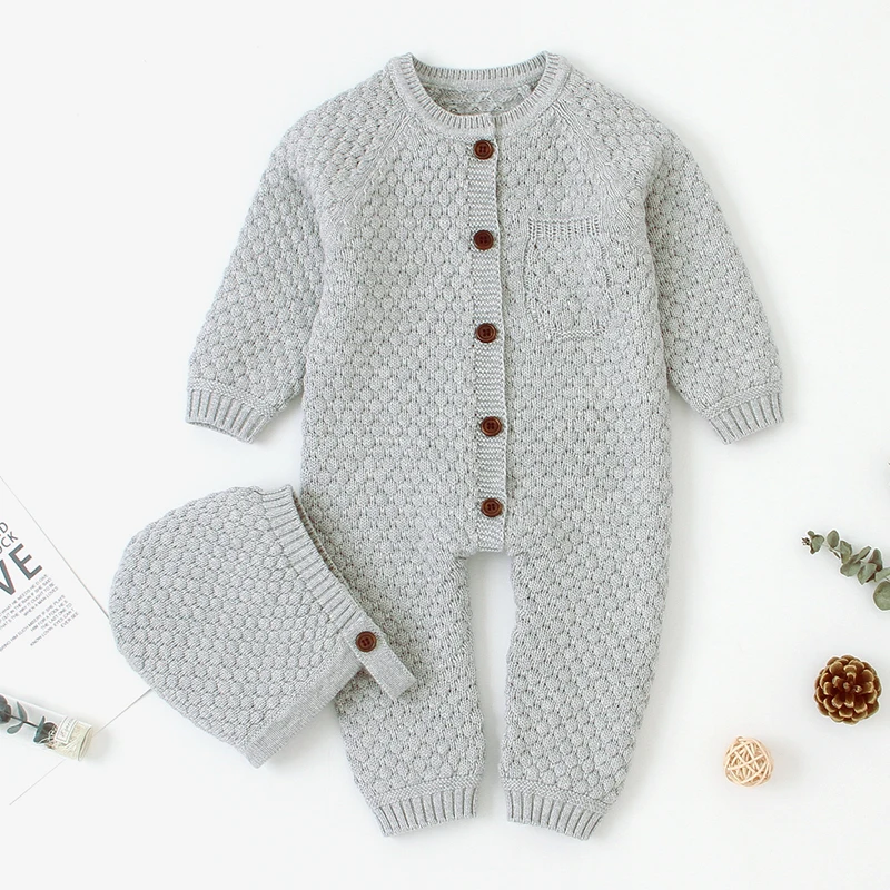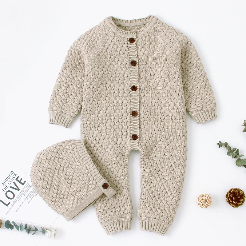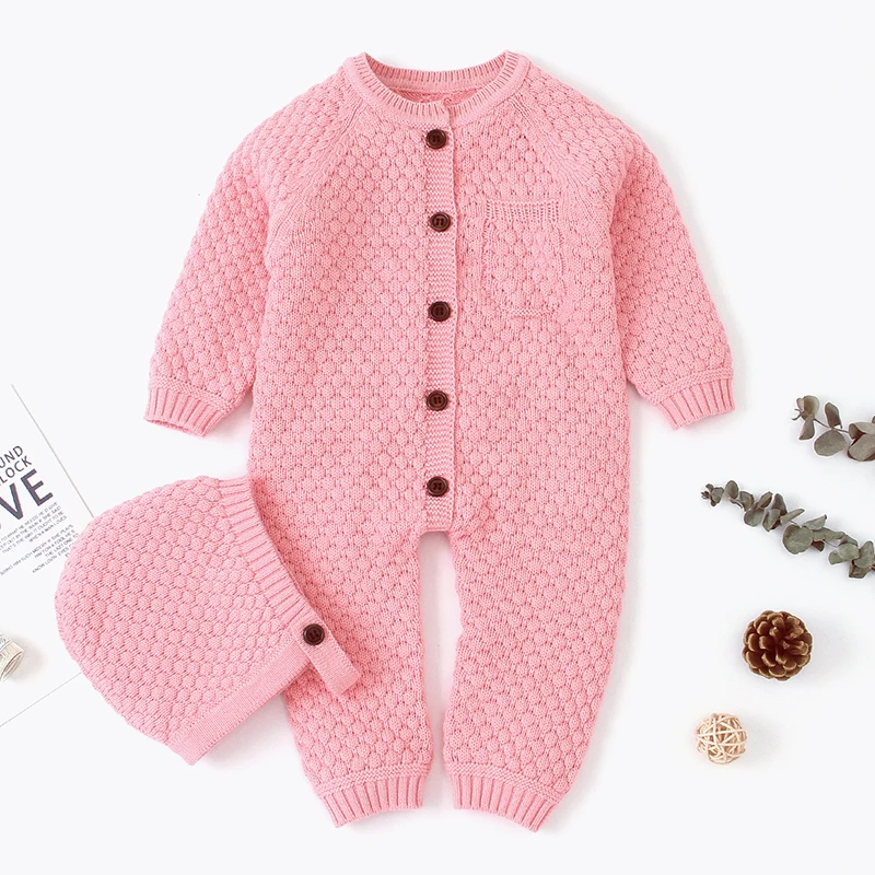 Special Offer Herfst Winter Springt Baby Meisje Kleding Gebreide Babykleertjes Pasgeboren Baby Romper Met Hoed Baby Jumpsuit Voor Jongen Meisje romper Discount 20% Today!