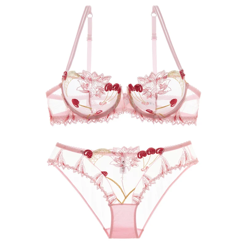 Special Offer Shaonvmeiwu Geborduurde mesh garen dunne gedeelte transparante sexy verleiding holle spons gratis ondergoed beha pak beha Discount 40% Today!