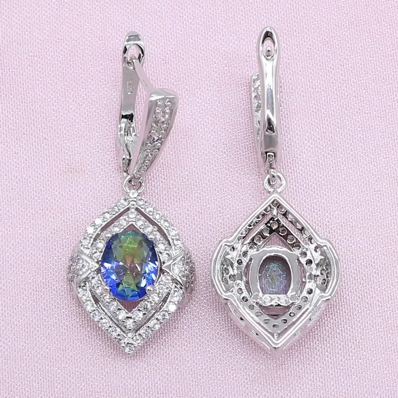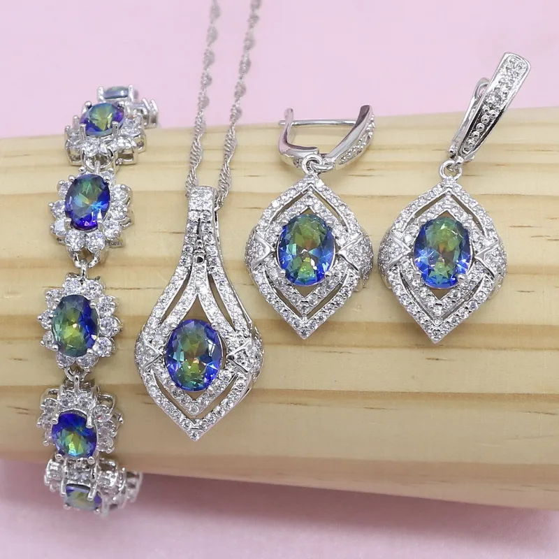 Special Offer Nieuwkomers 925 Zilveren Sieraden Sets Voor Vrouwen Verjaardagscadeau Multicolor Crystal Prachtige Oorbellen Armband Hanger Ketting Ring Discount 45% Today!