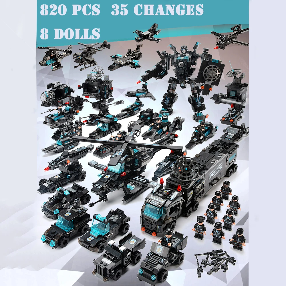 Special Offer 820 Pcs Bouwstenen Robot City Politie Speelgoed Voor Jongens Voertuig Vliegtuigen Educatief Truck Blokken Compatibel Legoed Model Bricks Discount 48% Today!