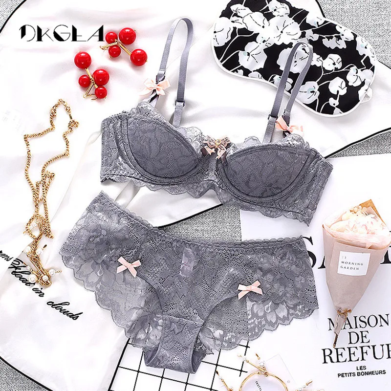Special Offer Mode Sexy Bh Sets Plus Size C D Cup Dunne Katoenen Ondergoed Vrouwen Set Kant Comfortabele Brasserie Grijs Bras Borduren lingerie Discount 50% Today!