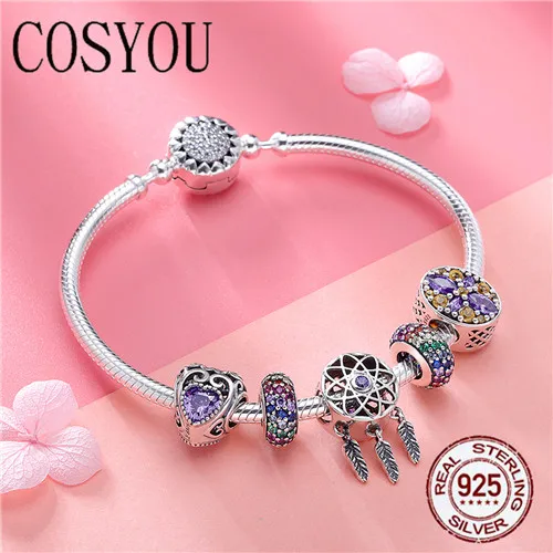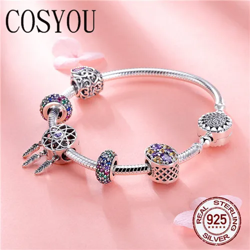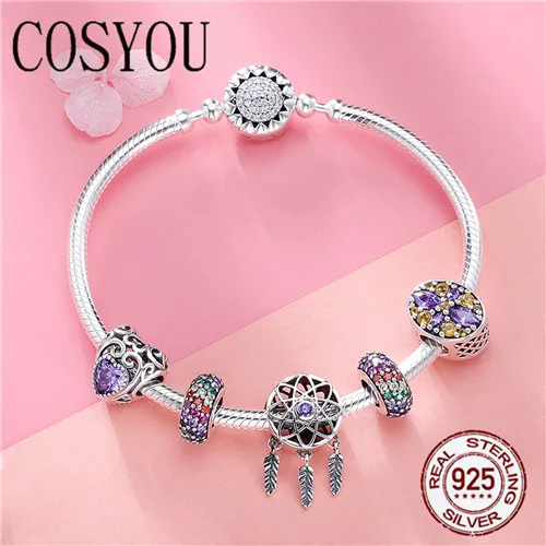 Special Offer COSYOU 100% 925 Sterling Zilver Dream Catcher Houder Hart Emaille Spacer Armbanden en Armbanden voor Vrouwen Zilveren Sieraden SCB809 Discount 0% Today!