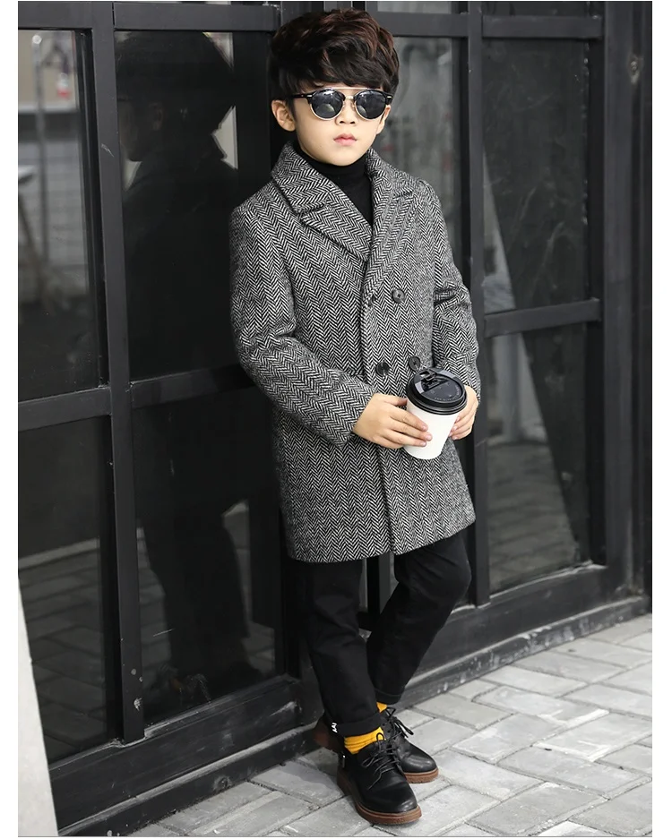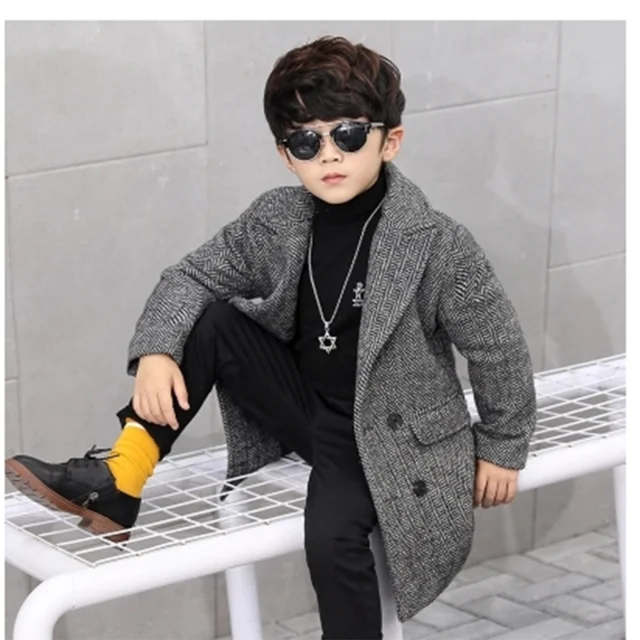 Special Offer Dikker herfst winter plaid wollen jas kinderen lange wollen double breasted jasje jongen windjack Kids Winter Overjas Discount 0% Today!