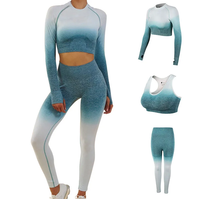 Special Offer Vrouwen Yoga Set Ombre Naadloze Leggings Gym Broek Sport Bh Fitness Lange Mouwen Crop Top Workout Kleding Pak Running Sportkleding Discount 0% Today!