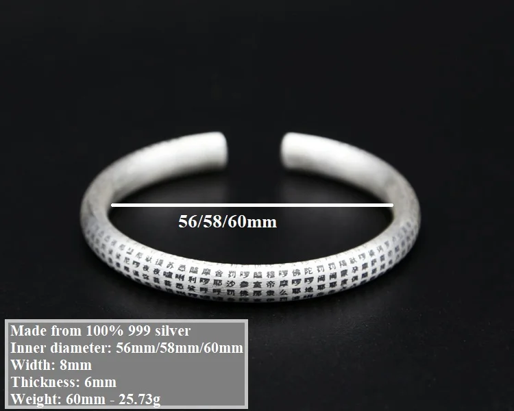 Special Offer 100% 999 Zilveren De Grote Mededogen Mantra Armband De Boeddhistische Ta Pei Zhou Vrouwen Manchet Armband Discount 18% Today!