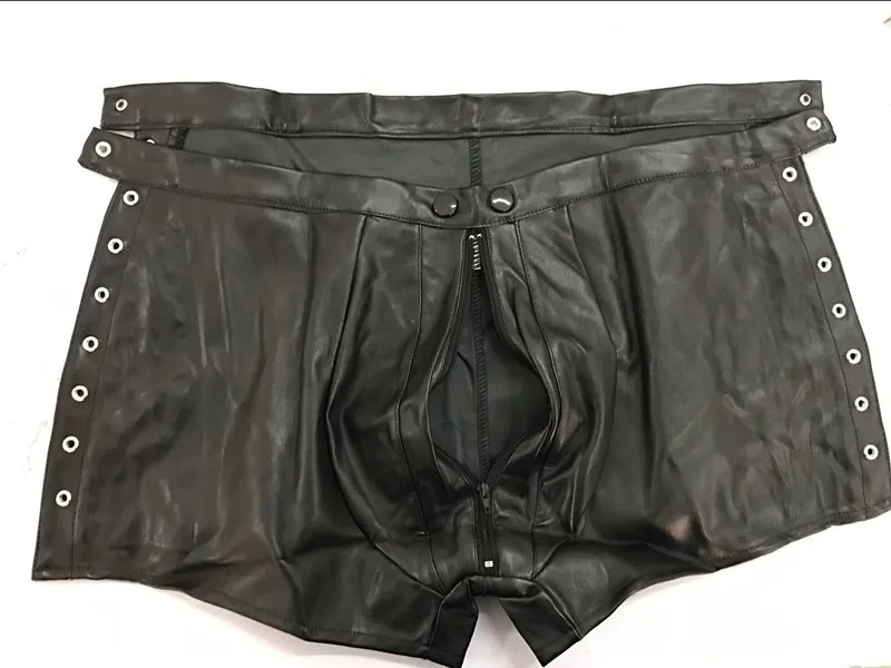 Special Offer Nieuwe 2018 Mannen Lakleer Trekkoord Shorts Sexy Zwarte PVC Latex Boxershorts Erotische Wetlook Lingerie Man Fetish Kostuum Discount 18% Today!