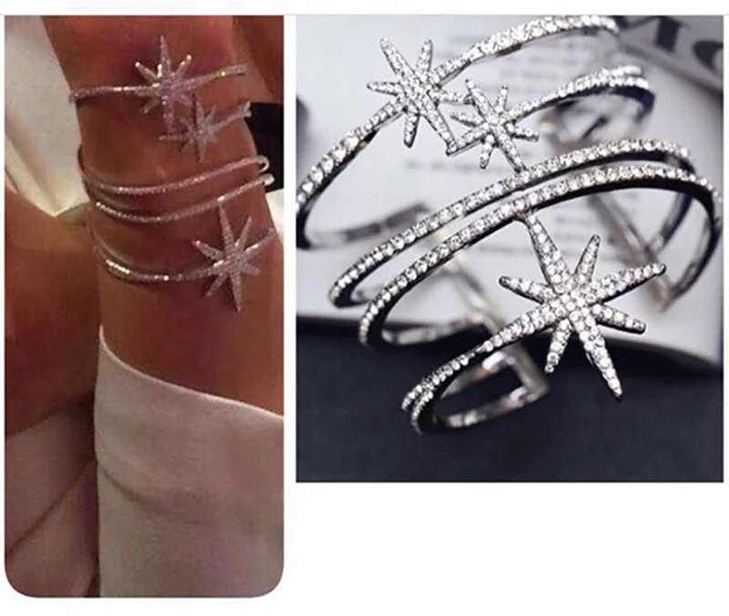 Special Offer Luxe Ster Ontwerp Manchet Armbanden Met Top Kwaliteit Zirconia Kruis Armband Femme Voor Gift Party Armbanden For a Vrouwen AB015 Discount 26% Today!
