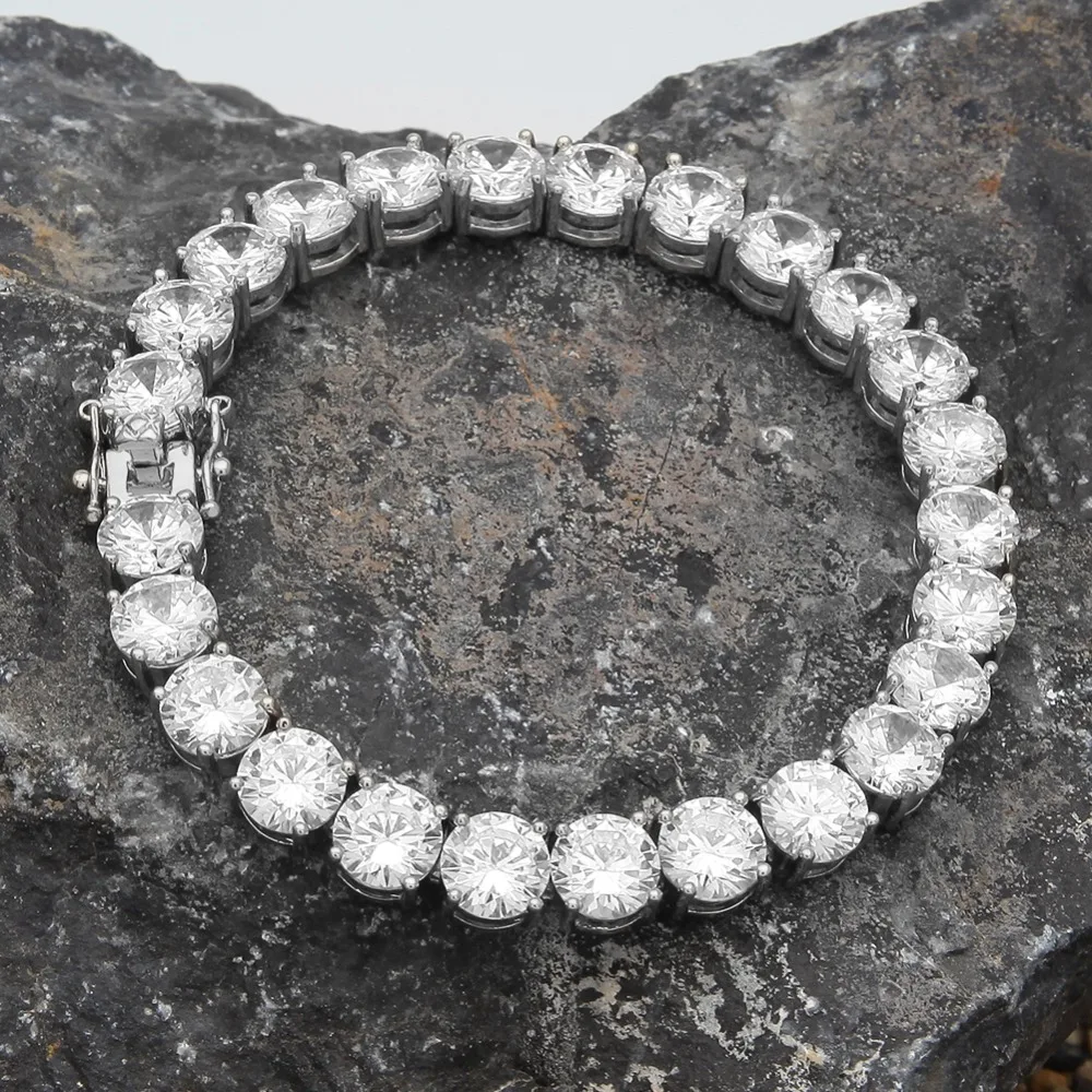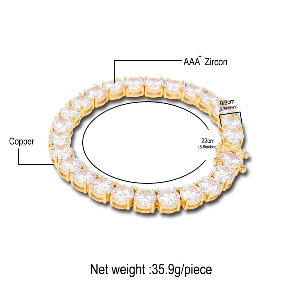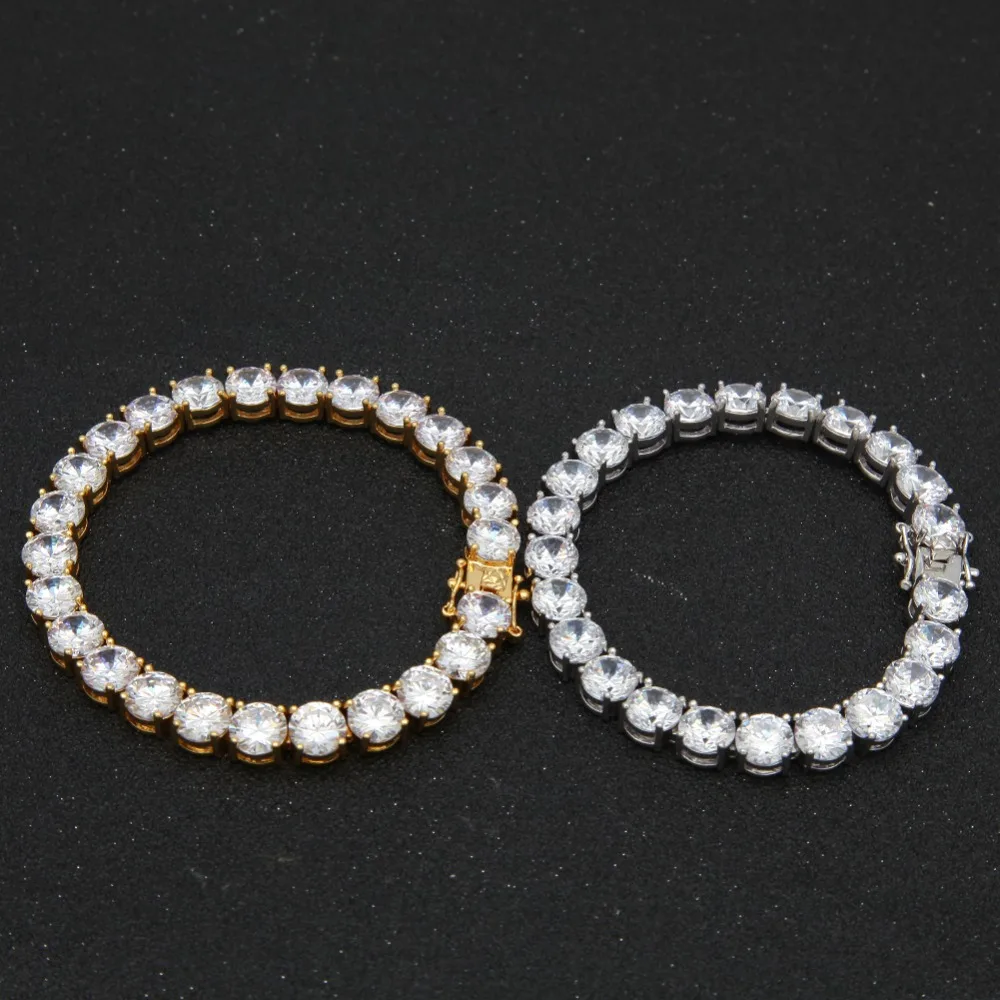 Special Offer DE BLING KONING 1 Rij Ronde Cut CZ 8mm Tennis Armband Goud Zilver Tone 22cm Koper Zirconia heren hip Hop Sieraden Discount 29% Today!
