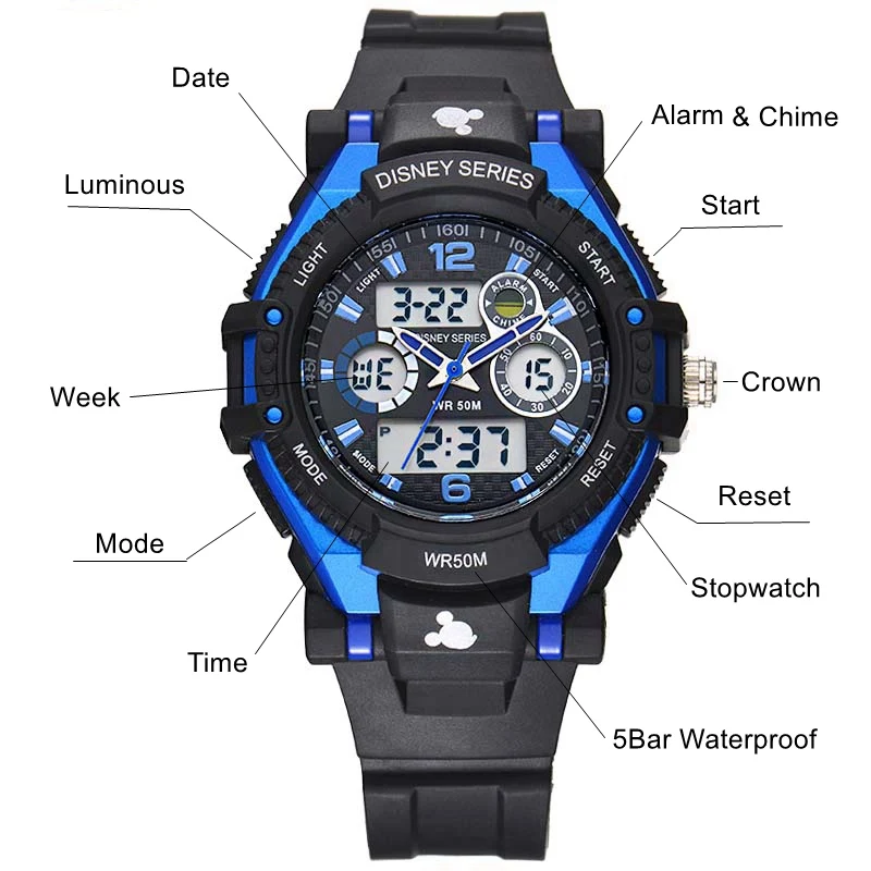 Special Offer Disney kinderen sport multifunctionele horloge Jongen Meisje als 5 ATM waterdicht rubber LED ronde klok Kids quartz Hot Mickey 55049 Discount 35% Today!