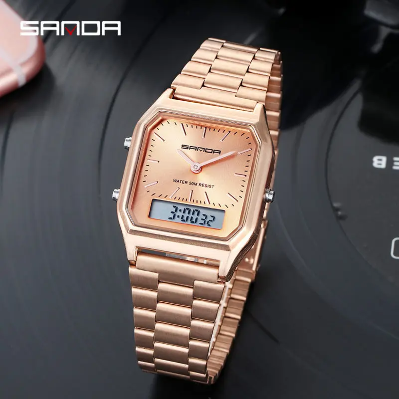 Special Offer Mode Vrouwen Luxe Gouden Roestvrij Stalen Armband Polshorloge Top Merk Sanda Sport Vrouwen Mannen Horloges Klok Met Gift Discount 35% Today!