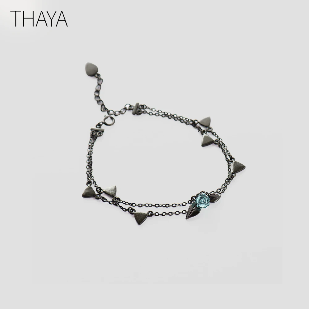 Special Offer Thaya 100% 925 Zilveren Doornen Rose Armband Twee Layer Kristal Bloem Zwarte Ketting Link Armband Voor Vrouwen Sieraden Korea Stijl gift Discount 50% Today!