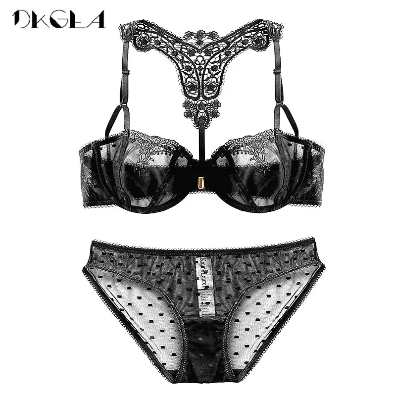 Special Offer Voorsluiting Beha Slipje Sets Transparante Brasserie Borduren Kant Ondergoed Vrouwen Set Zwart Ultradunne Sexy Vrouwen Lingerie Set Discount 50% Today!