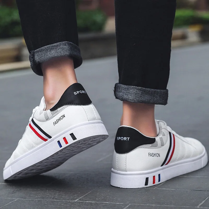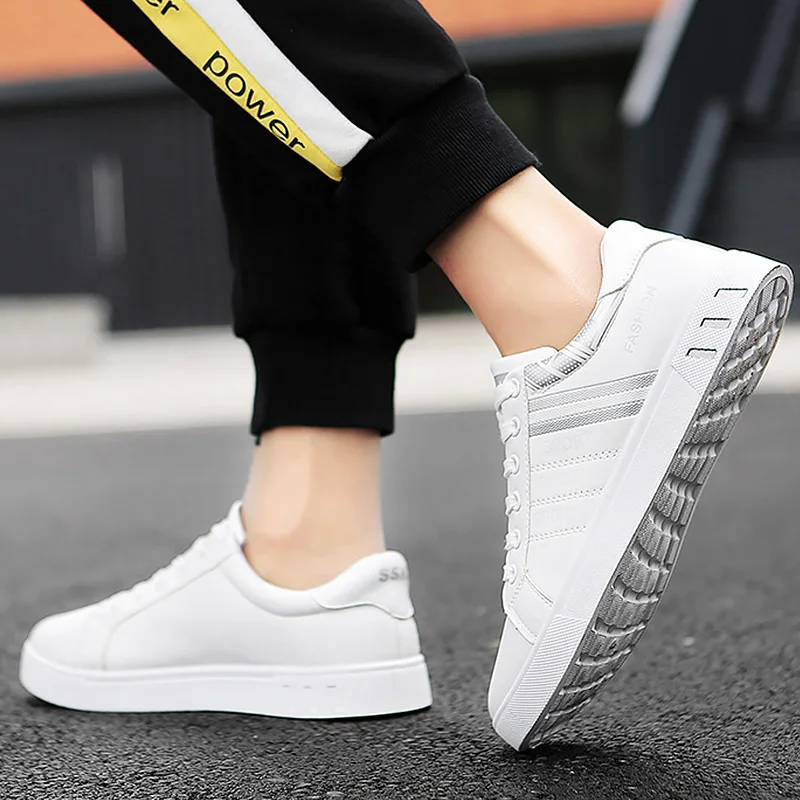 Special Offer Sport schoenen mannen witte sneakers maat 39 44 comfort sneakers voor mannen lederen wit jongens school schoenen 2020 lente nieuwe stijl Discount 52% Today!