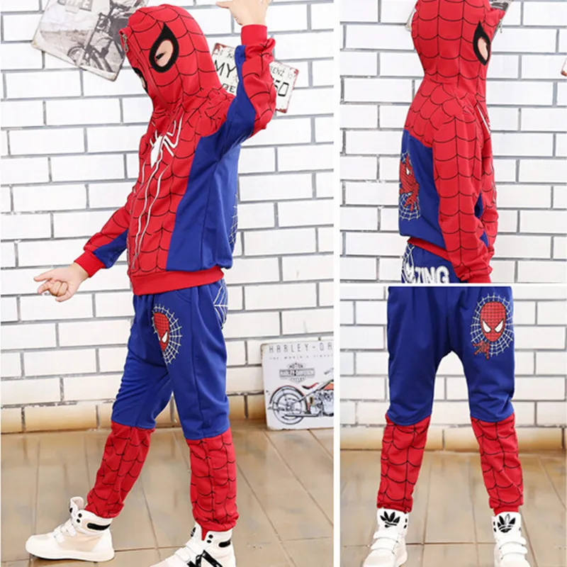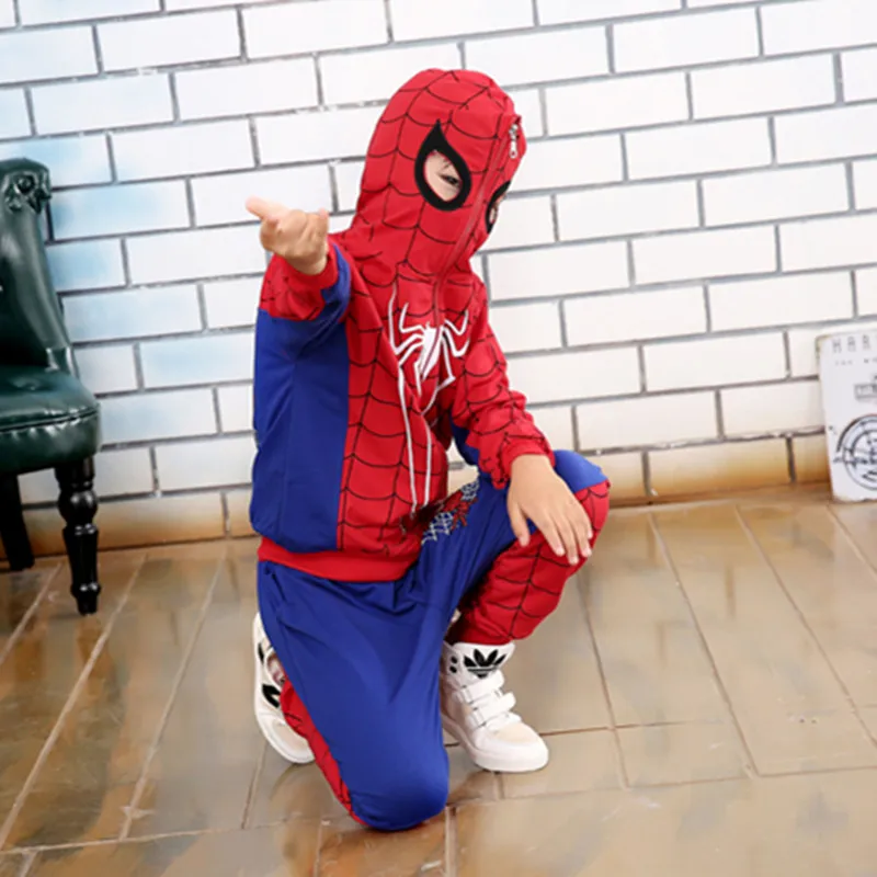 Special Offer Comic Spider Kostuum man Rood Zwart Spider Anime Cosplay Kinderen Kleding Set Halloween Kostuum voor Jongens Kids jas broek Discount 9% Today!