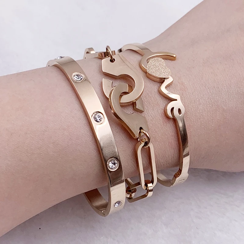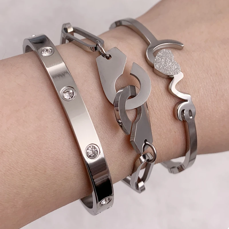Special Offer Mavis Haas Handboeien Link Hart Liefde Crystal Bangle Set Rvs Manchet Open Armband Voor Woman Sieraden Discount 28% Today!