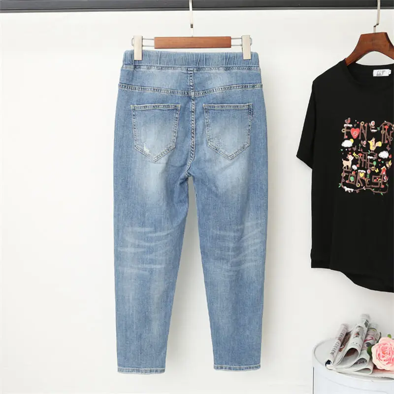 Special Offer L 5XL Boyfriend Jeans Vrouwen Met Hoge Taille Harembroek Plus Size Mom Jeans Streetwear Casual Elastische Vintage Jeans Femme Q1106 Discount 45% Today!