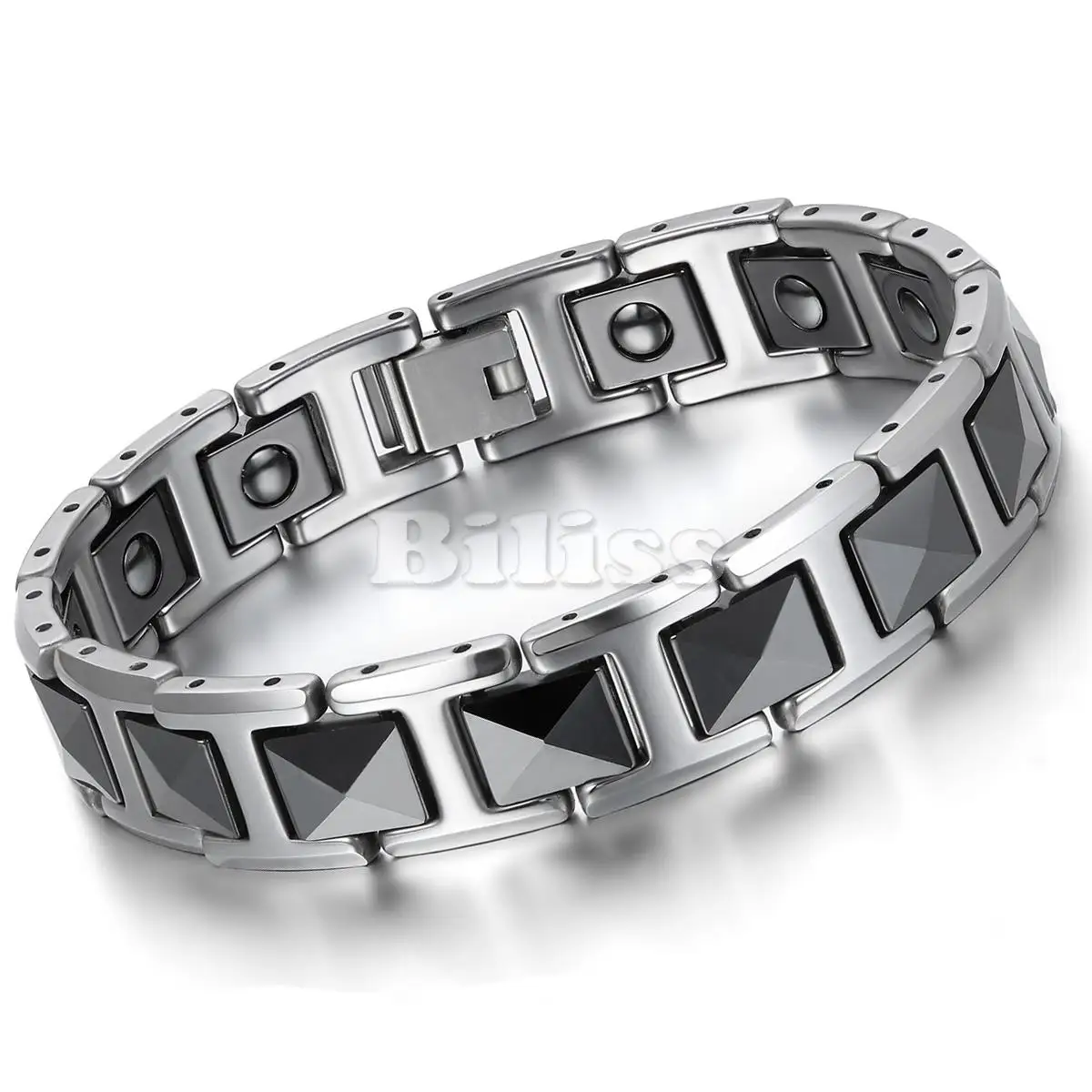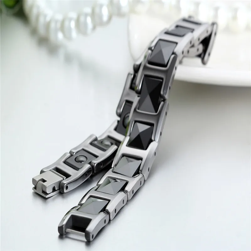 Special Offer Mode Koele Zwarte Keramische Armband Gezondheid Energie met Magnetische Steen Wolfraam Keten Armbanden Voor Mannen Cadeaus voor Kerst Discount 8% Today!