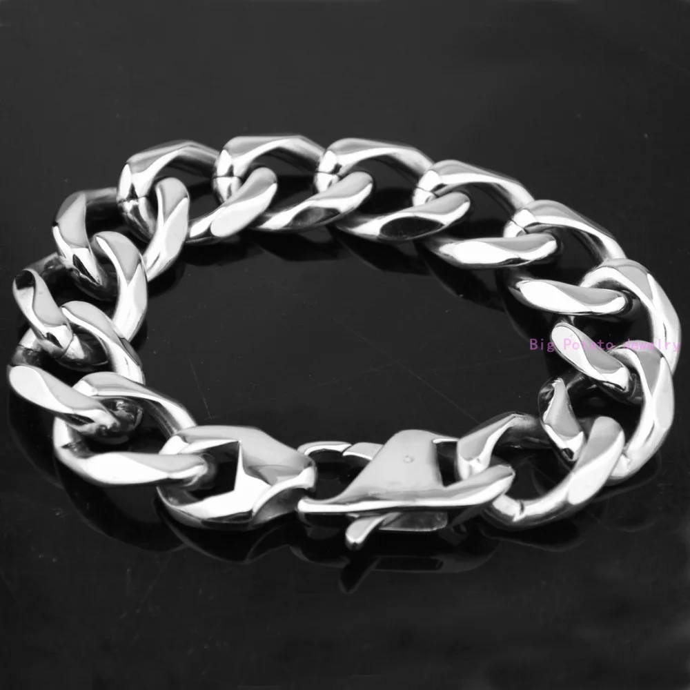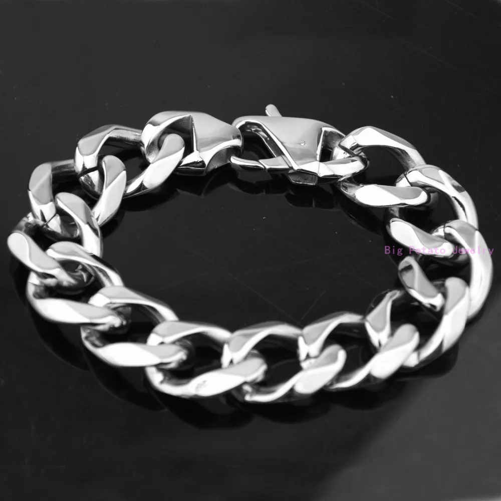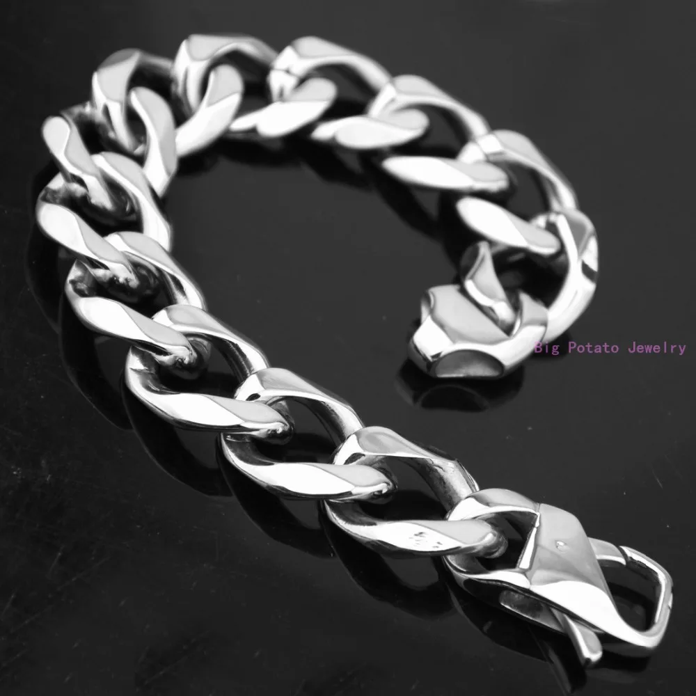 Special Offer 19mm Breed Enorme Zware Zilveren Cubaanse Curb Link Chain Rvs heren Kerstcadeau Armband Sieraden 7 11 inch Gratis Kiezen Discount 10% Today!