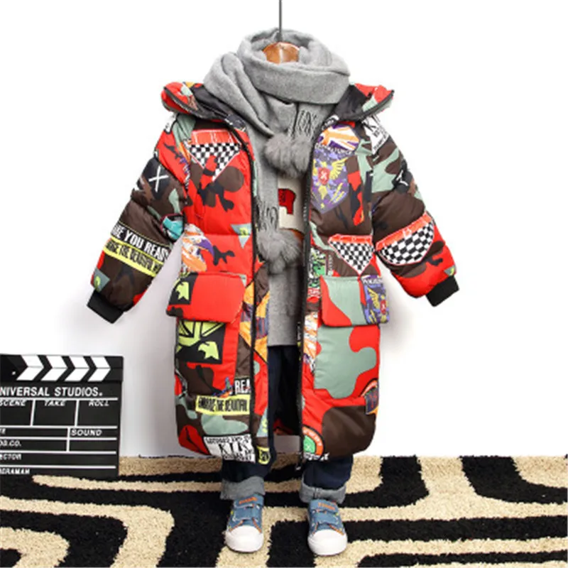 Special Offer 2019 Graffiti Camouflage Parka Jas voor Jongens Merk Hooded Winter Jassen Voor Tieners Jongens Dikke Lange Jas Kids Kleding Discount 30% Today!