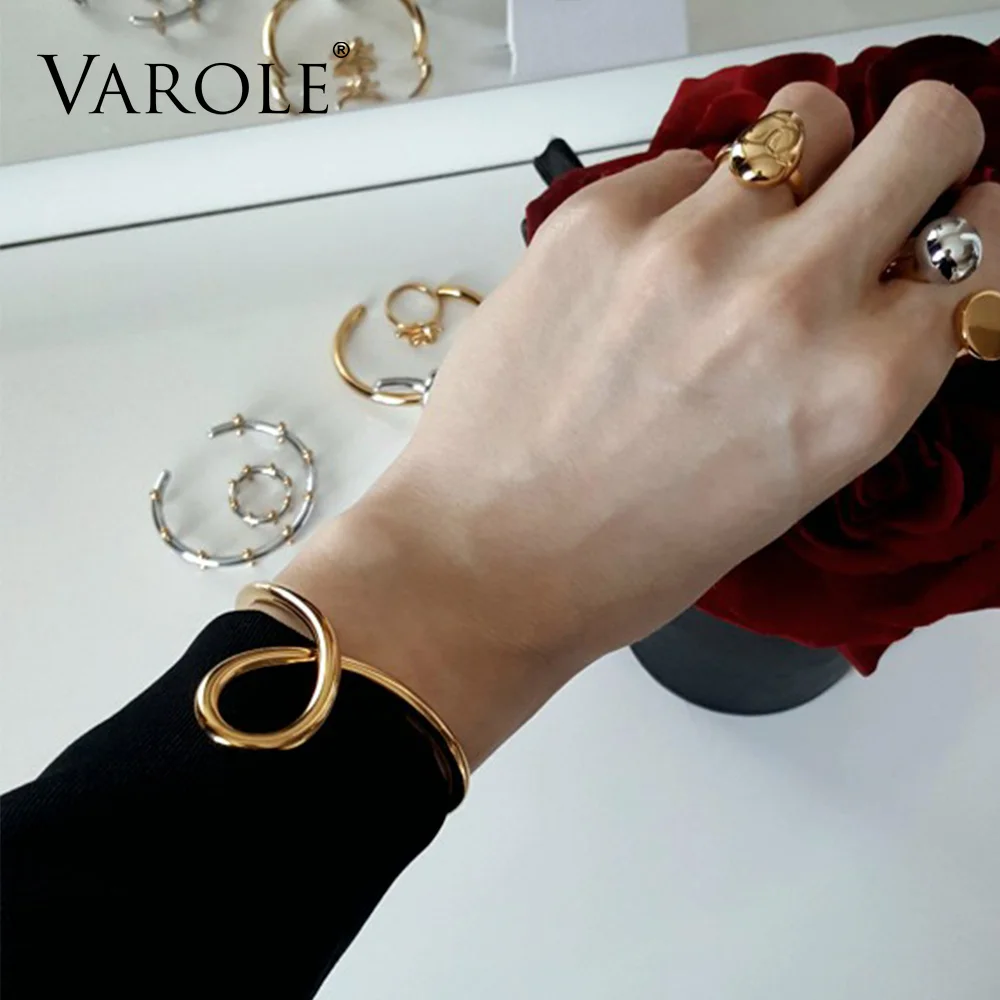 Special Offer VAROLE Eenvoudige Lijnen Overdreven Armbanden en Armbanden voor Vrouwen Manchet Armband Goud Zilver Kleuren Noeud Armband Pulseiras Discount 30% Today!