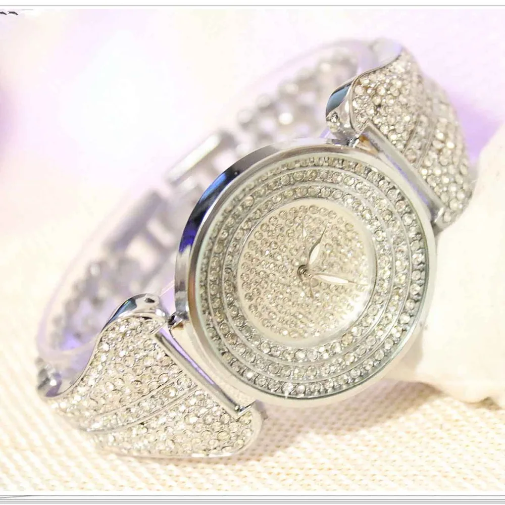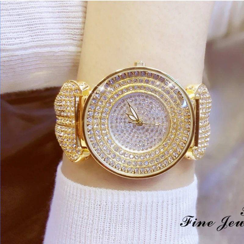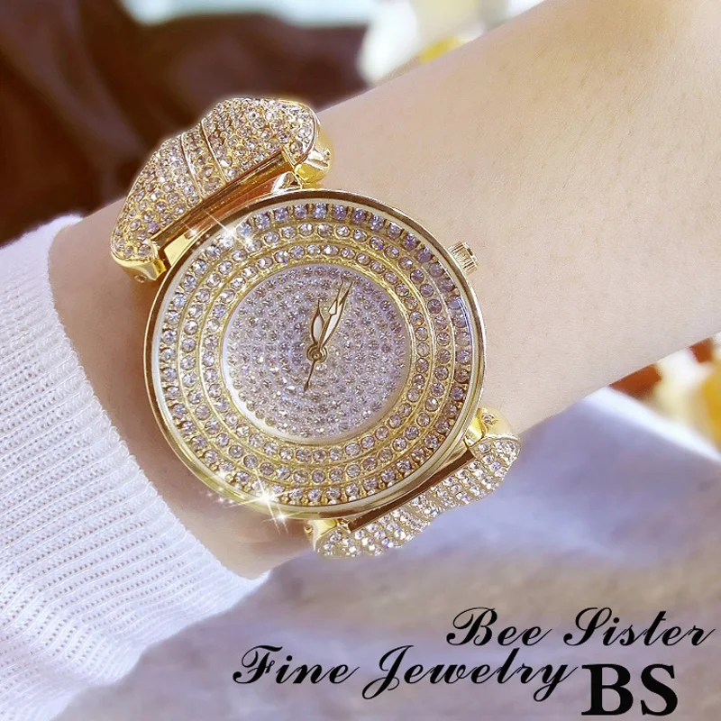 Special Offer BS brand Fashion Rhinestone Quartz dames Horloge Gouden vrouwen Jurk Horloges Volledige Diamond Crystal Armband Klok relogio feminino Discount 34% Today!