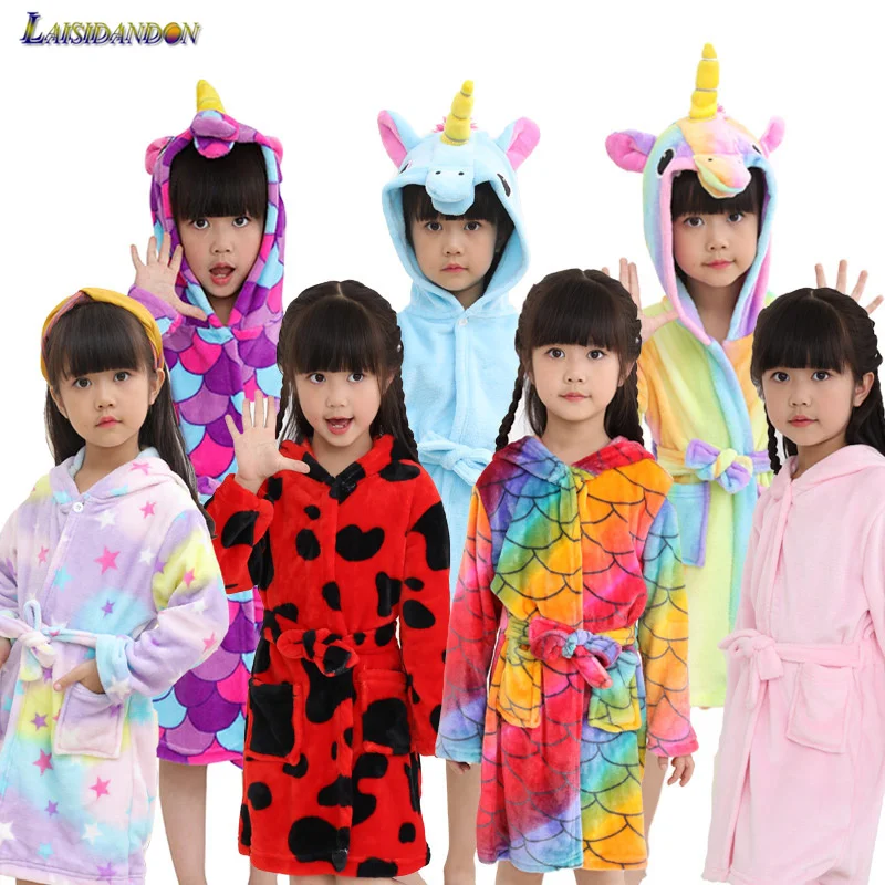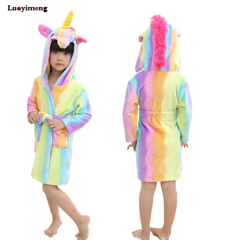 Special Offer Baby Jongen Gewaad Voor Meisje Kleding Kigurumi Eenhoorn Badjassen Voor Kinderen Winter Warm Hooded Handdoek Badjas Dier Cartoon Fannel Gewaden Discount 36% Today!