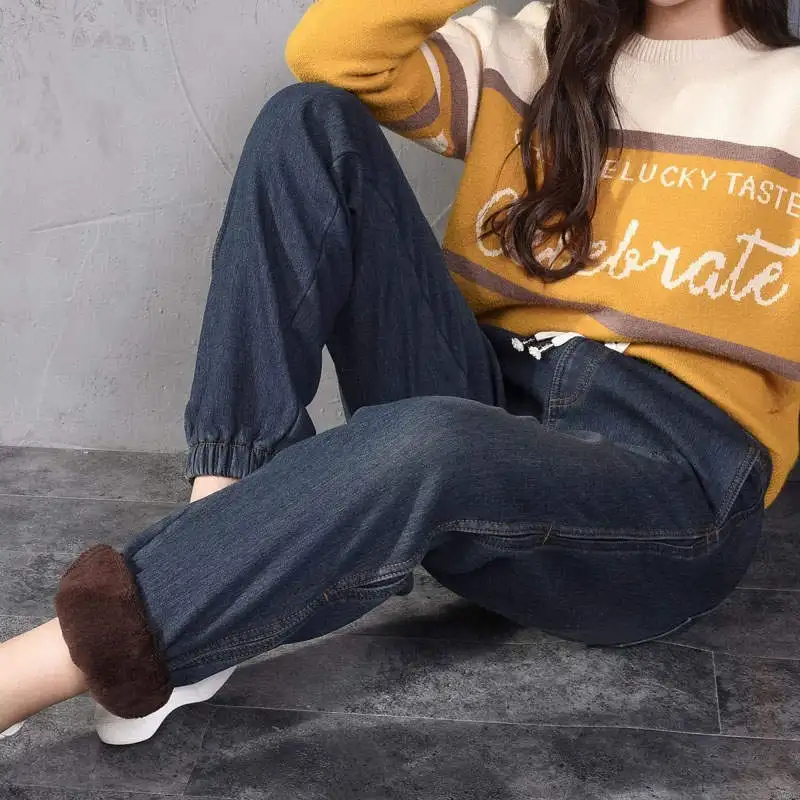 Special Offer Herfst Winter Plus Fluwelen Dikker Boyfriend Jeans Voor Vrouwen Koord Taille Warme Harembroek Vrouwen Denim Lange Jean Femme C5759 Discount 48% Today!