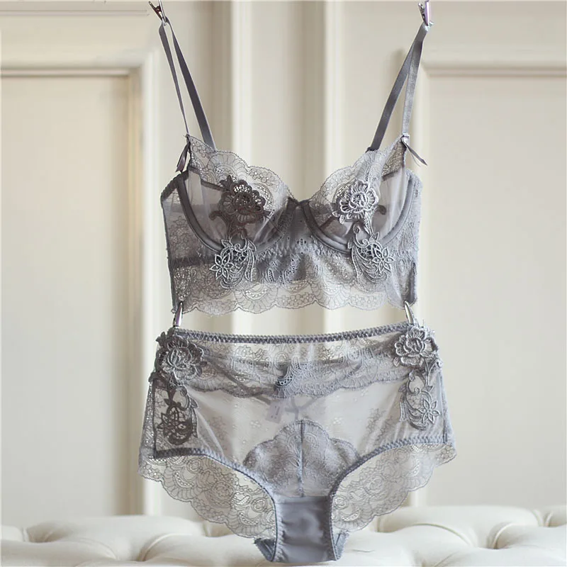 Special Offer Nieuwe Verzamelen Aangepast Dunne Cup sexy Lingerie Bh Set Ondergoed Transparant Verleiding Sexy Bh Set Voor Vrouwen Discount 55% Today!