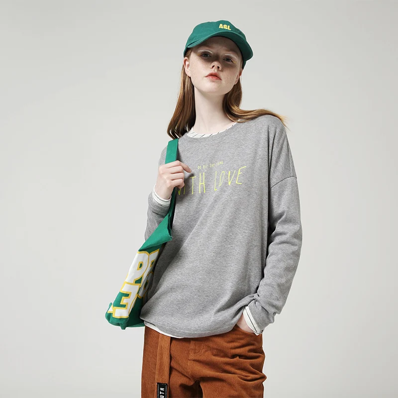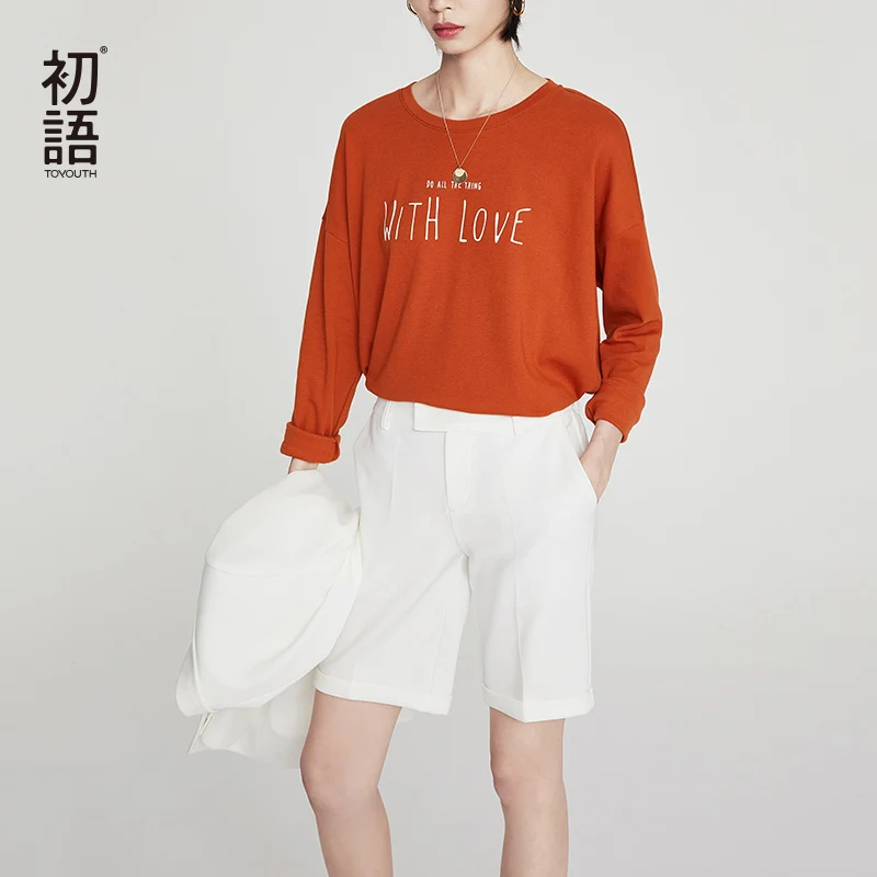 Special Offer Toyouth Vriendje Stijl T shirts Voor Vrouwen Lettern Gedrukt O Kraag Lange Mouwen Solid Casual T shirt Vrouwelijke Tops Discount 60% Today!