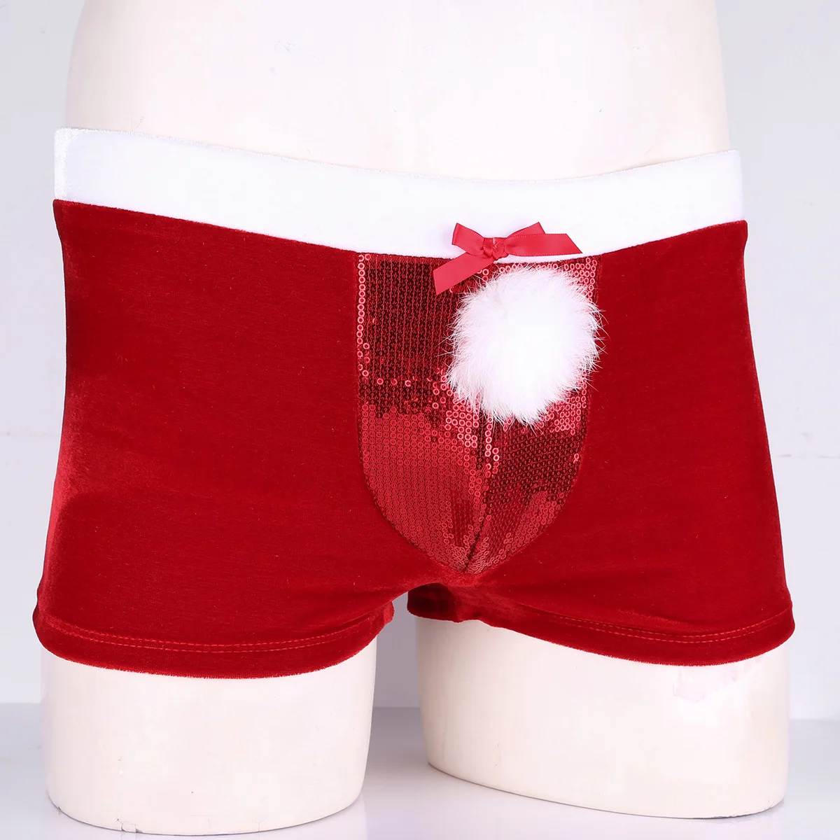 Special Offer Mens Rode Lingerie Fluwelen Kerstvakantie Boxershorts Laagbouw Glanzende Pailletten Ardennen Pouch met een Pluche Bal Ondergoed Underpant Discount 0% Today!