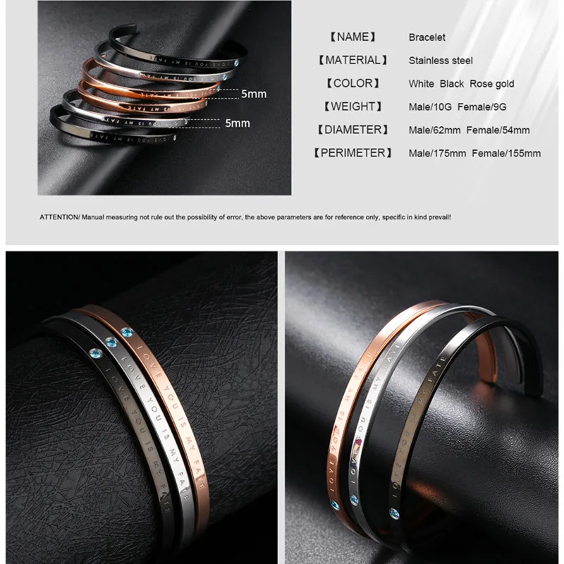 Special Offer Rose Gold Crystal Armband Manchet Armband Mannen Stainlesss Staal Open Bangle met Crystal Armband met Steen Sieraden Discount 0% Today!
