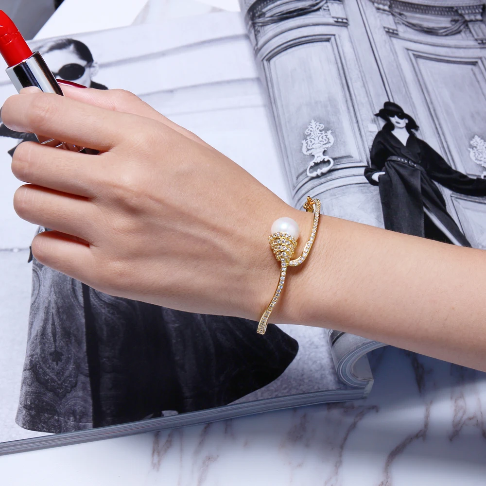 Special Offer DreamCarnival 1989 Vrouwen Deluxe Armbanden Bangles Gemaakt Parel Luxe Bruiloft Sieraden Fonkelende Zirkoon Gift pulseira feminina Discount 15% Today!