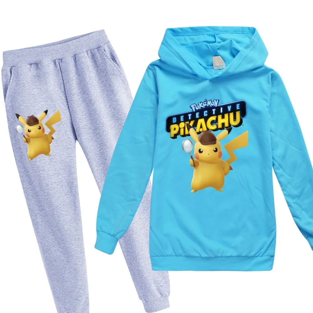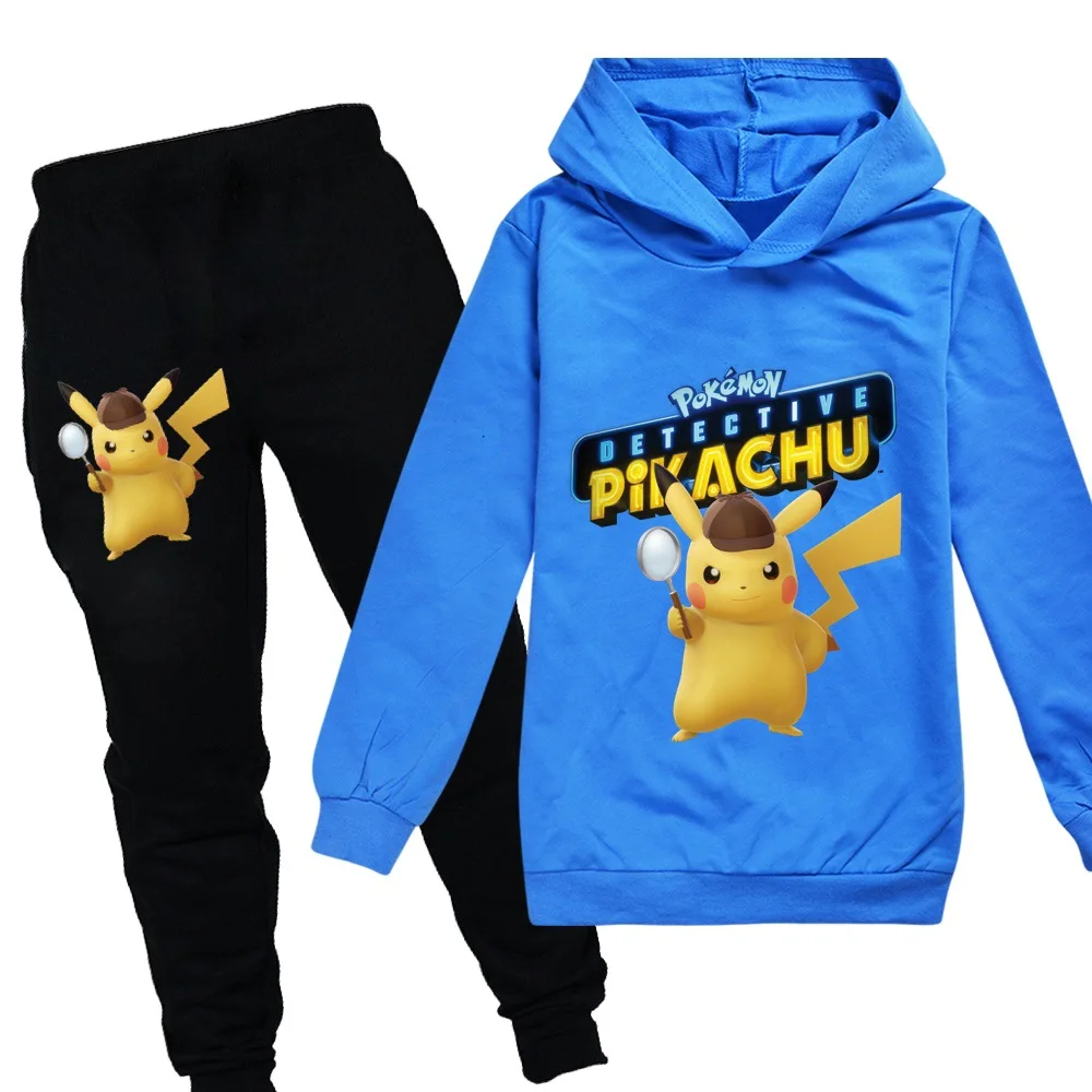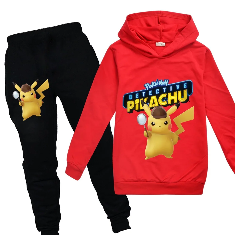 Special Offer POKEMON Detective Pikachu Kids jongens Hooded t shirt broek sport past meisjes kleding Sets lange mouwen Trainingspakken kerst Outfits Discount 22% Today!