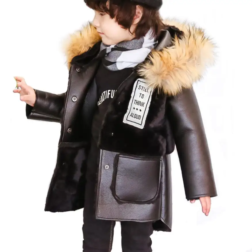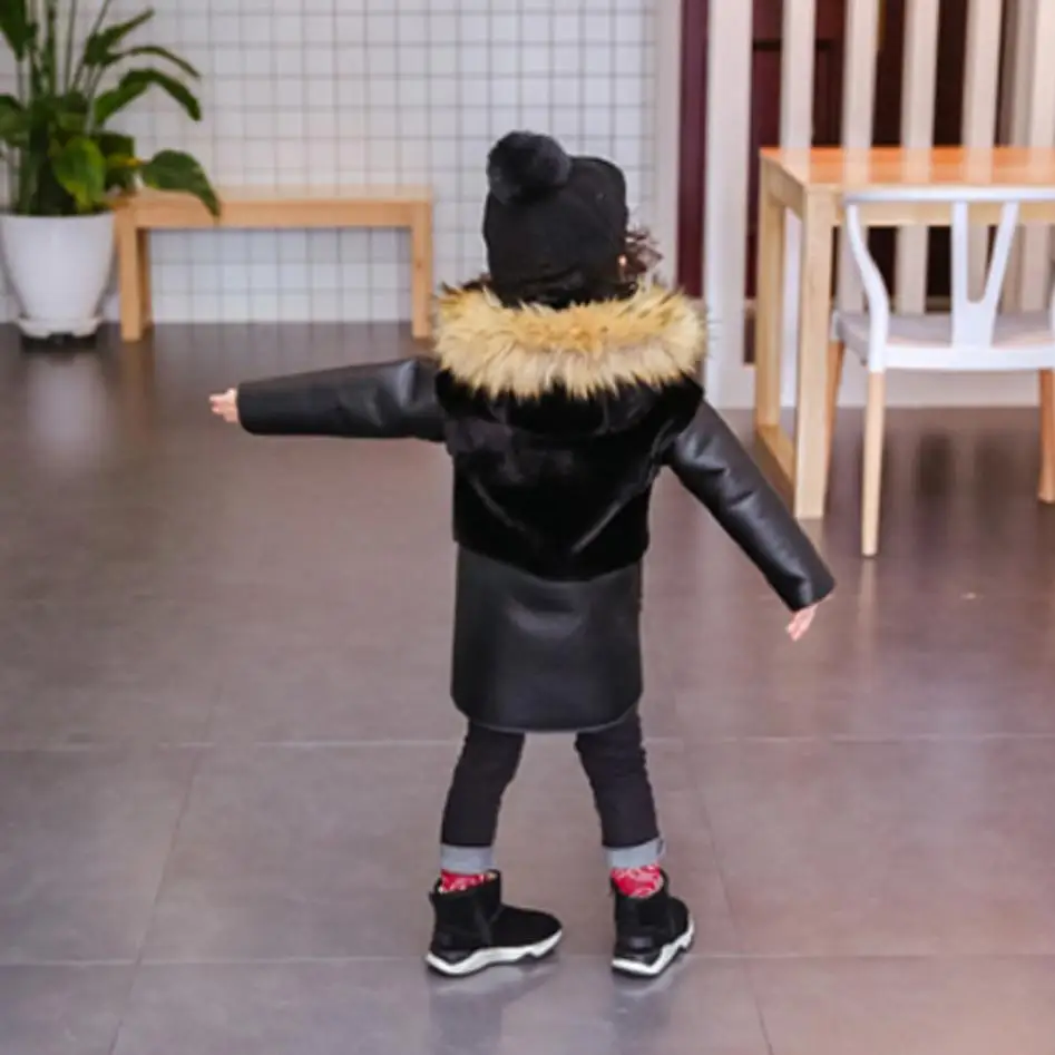 Special Offer 2019 Winter kinderen Faux Bontjas Patchwork Bont PU Lederen jassen Baby Jongens Meisjes Warm Bont kapmantel Dikkere bovenkleding Y44 Discount 25% Today!