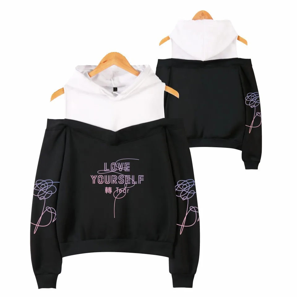 Special Offer BTS Bulletproof Jongens Nieuwe Album LOVE Yourself Fashion DAMES Jurk off Shoulder Hoodie Discount 35% Today!