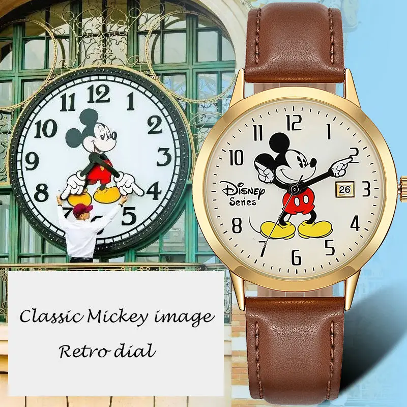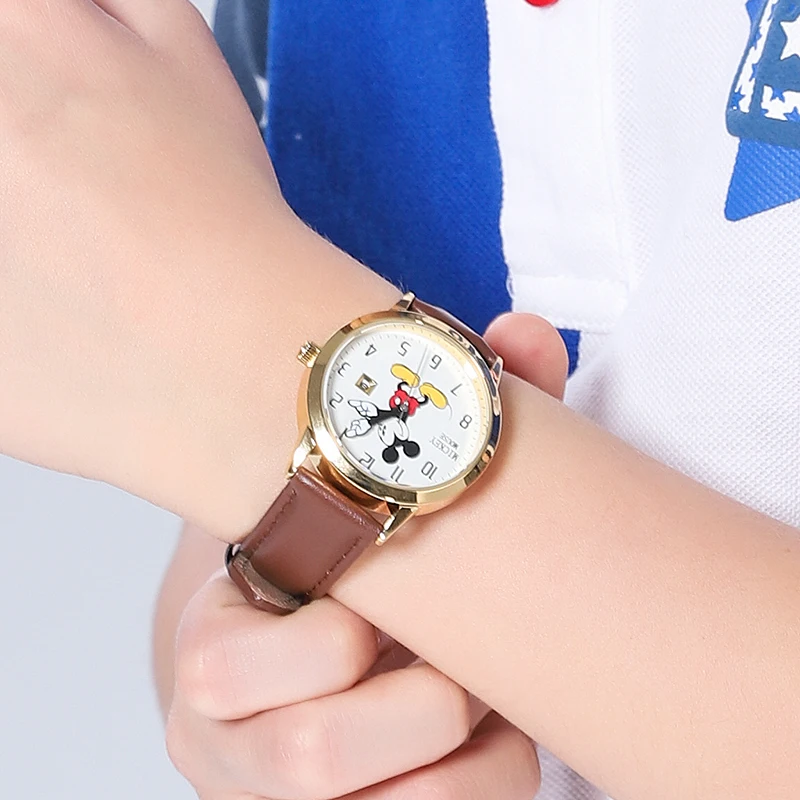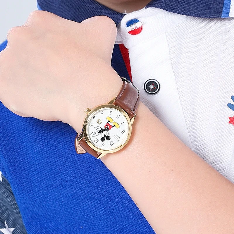 Special Offer Disney Merk Mickey Mouse Vrouwen Horloges Dames Heren lederen Quartz Klokken Kinderen Horloges voor meisjes jongens Originele Geschenkdoos Discount 49% Today!