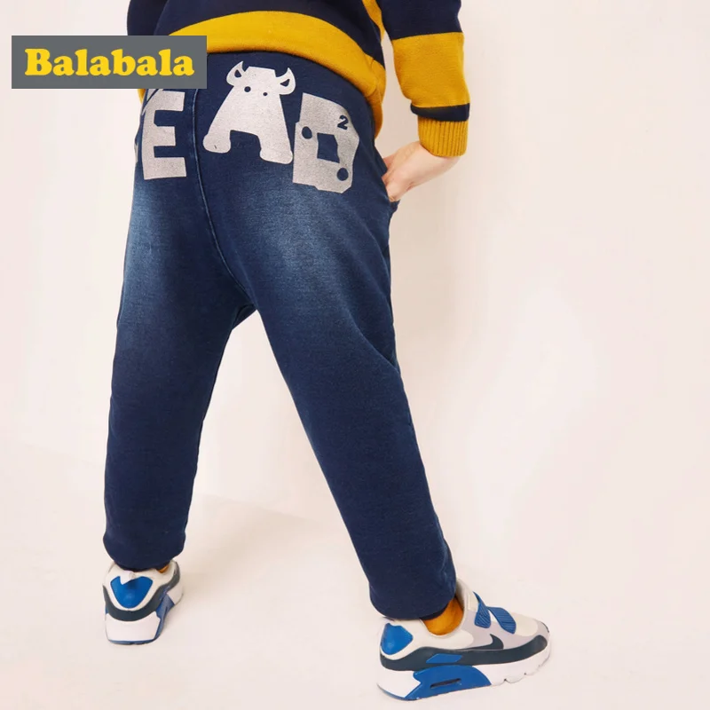 Special Offer Balabala Todder Jongen Fleece Gevoerde Pull op Jeans met Applique Kids Jongens Katoenen Jeans in Gewassen Denim met pocket Geribbelde Taille Discount 74% Today!